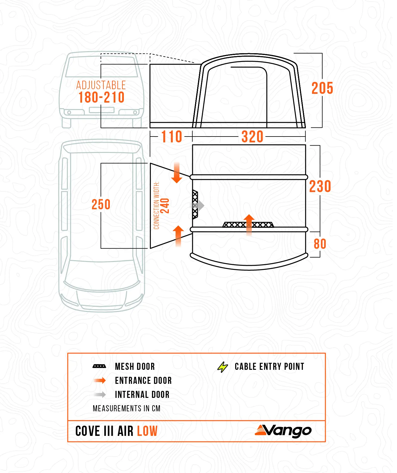 Specifications Vango Cove III Air Driveaway Awning - Mid