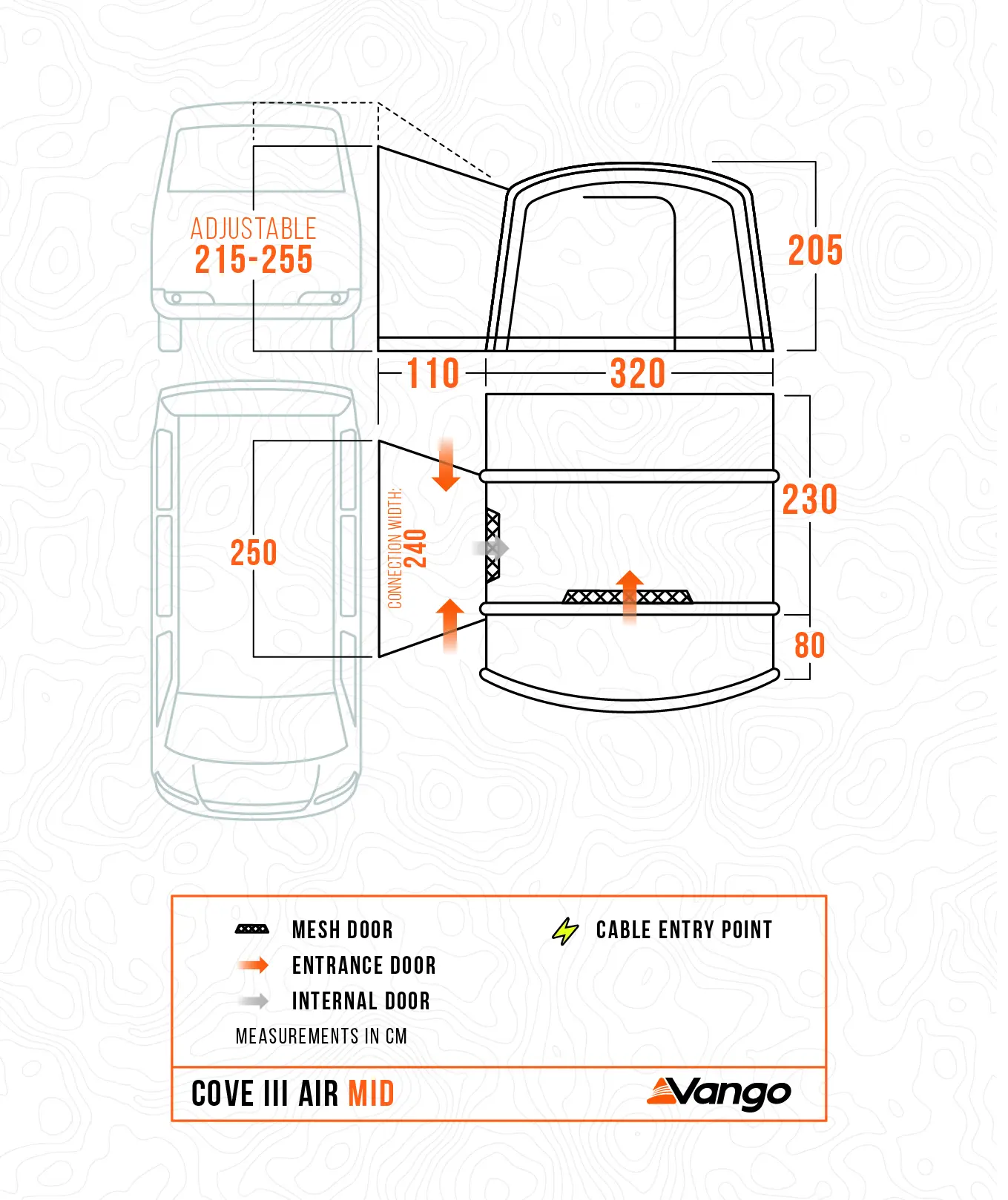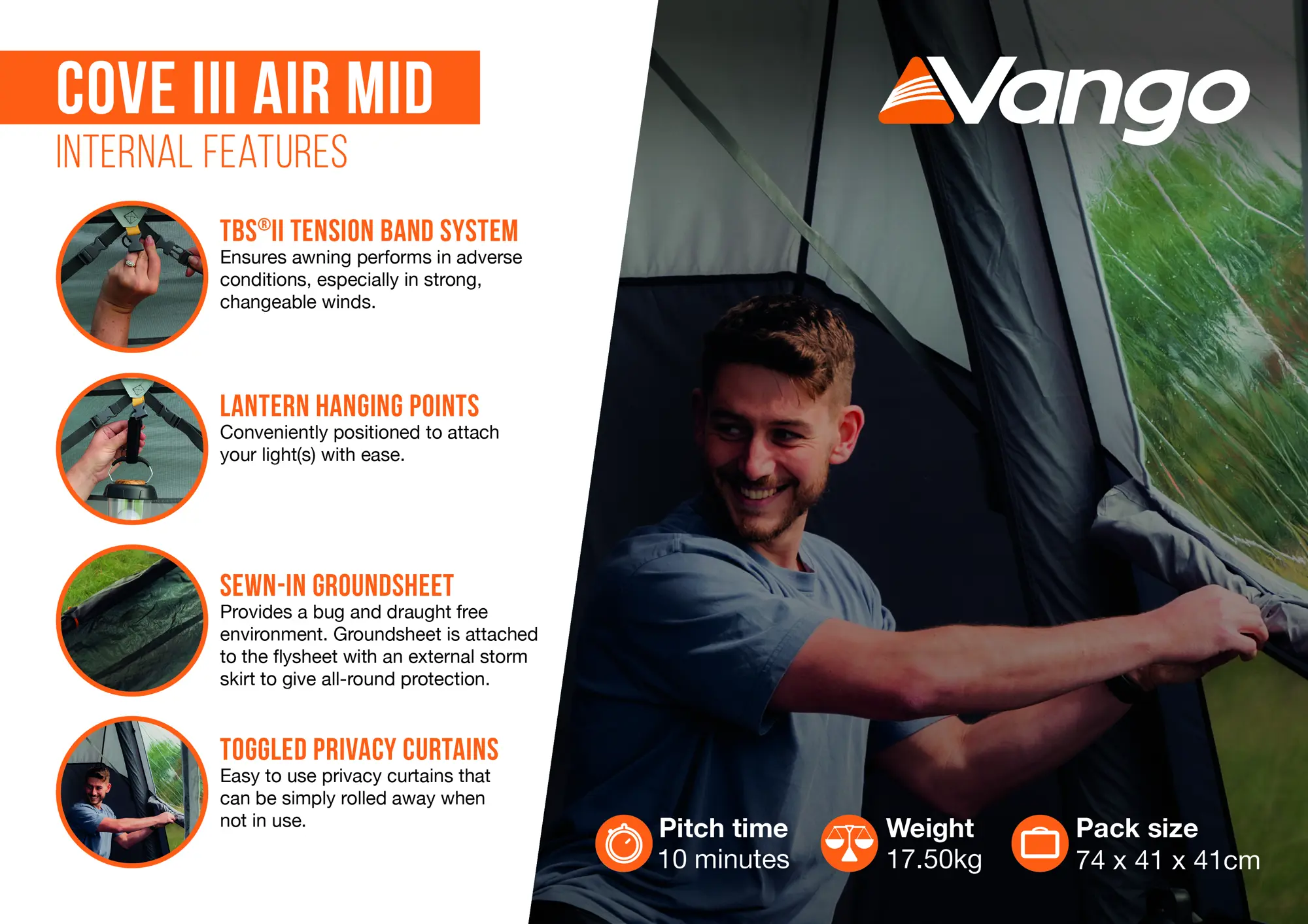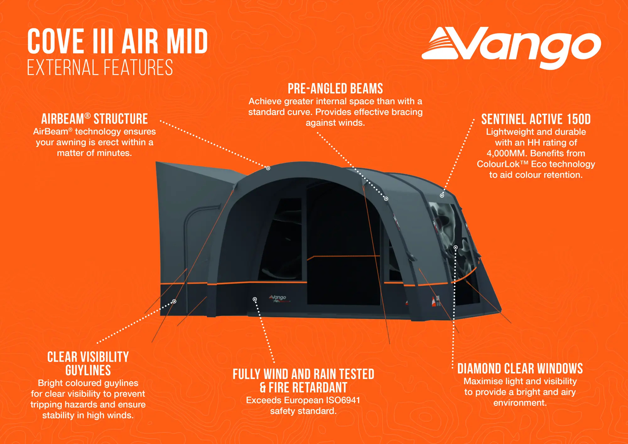 Specifications Vango Cove III Air Driveaway Awning - Mid
