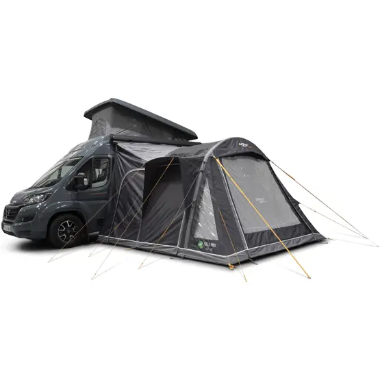 The Vango Kela Pro Air Mid represents a solid choice for motorhome and campervan owners who want proper living space without spending ages on setup. This driveaway awning uses Vango's AirBeam technology - basically inflatable poles instead of traditional metal ones - which means you can have it standing in about 10 minutes. The pre-angled beam design isn't just for show either. It creates noticeably more headroom inside whilst providing better wind resistance than straight beams. The tunnel section connects to your vehicle using four different methods (6mm kador strip, over-vehicle straps, roof bar tabs, or a pole and clamp system), so it'll fit most campervans and motorhomes without needing extra bits. That tunnel doubles as storage space or a covered corridor between your vehicle and living area, keeping mud and rain outside where it belongs.