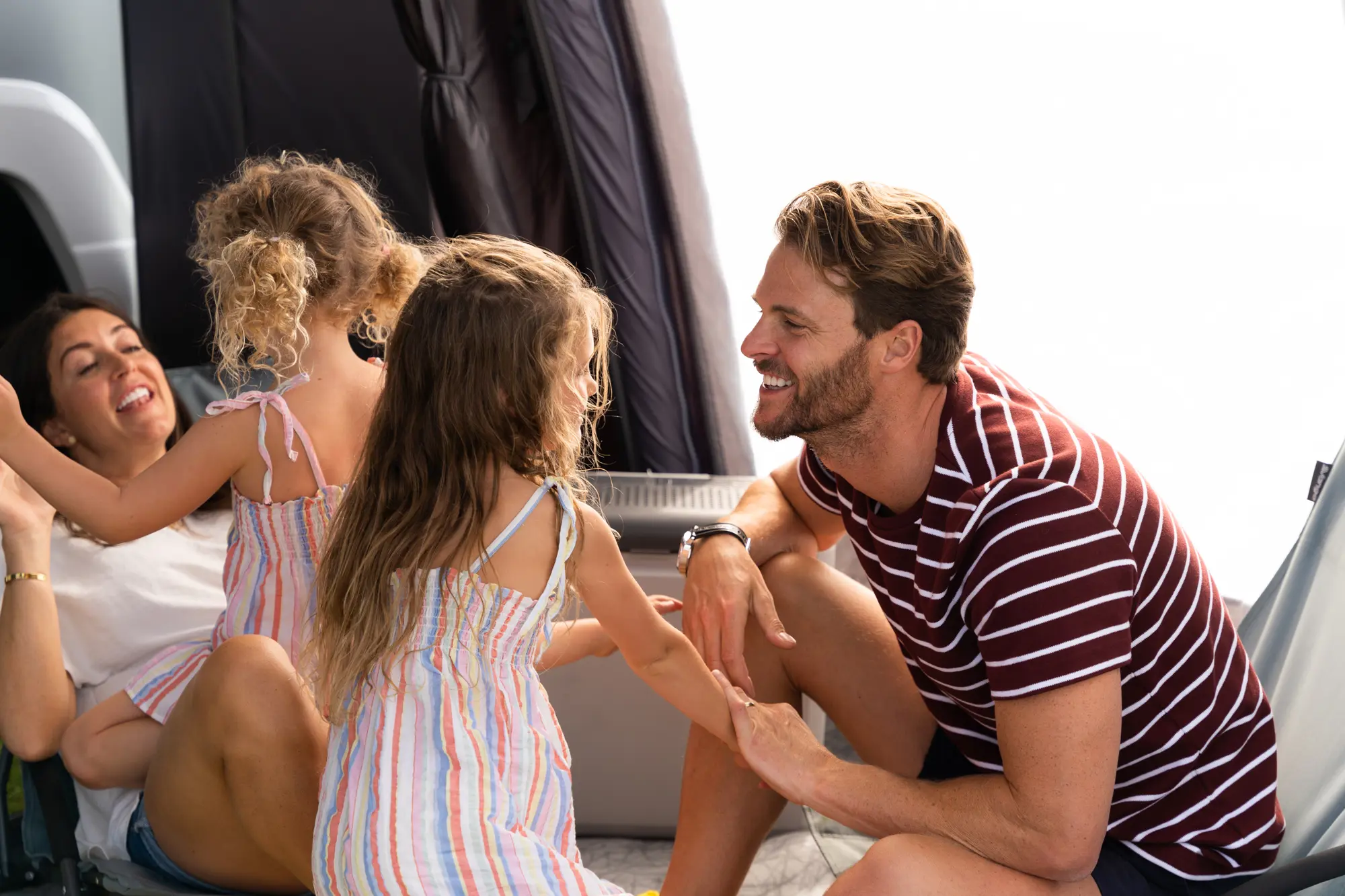 An optional two-berth bedroom can be added to the Kela Pro, providing extra sleeping space while still allowing access to the awning's features.