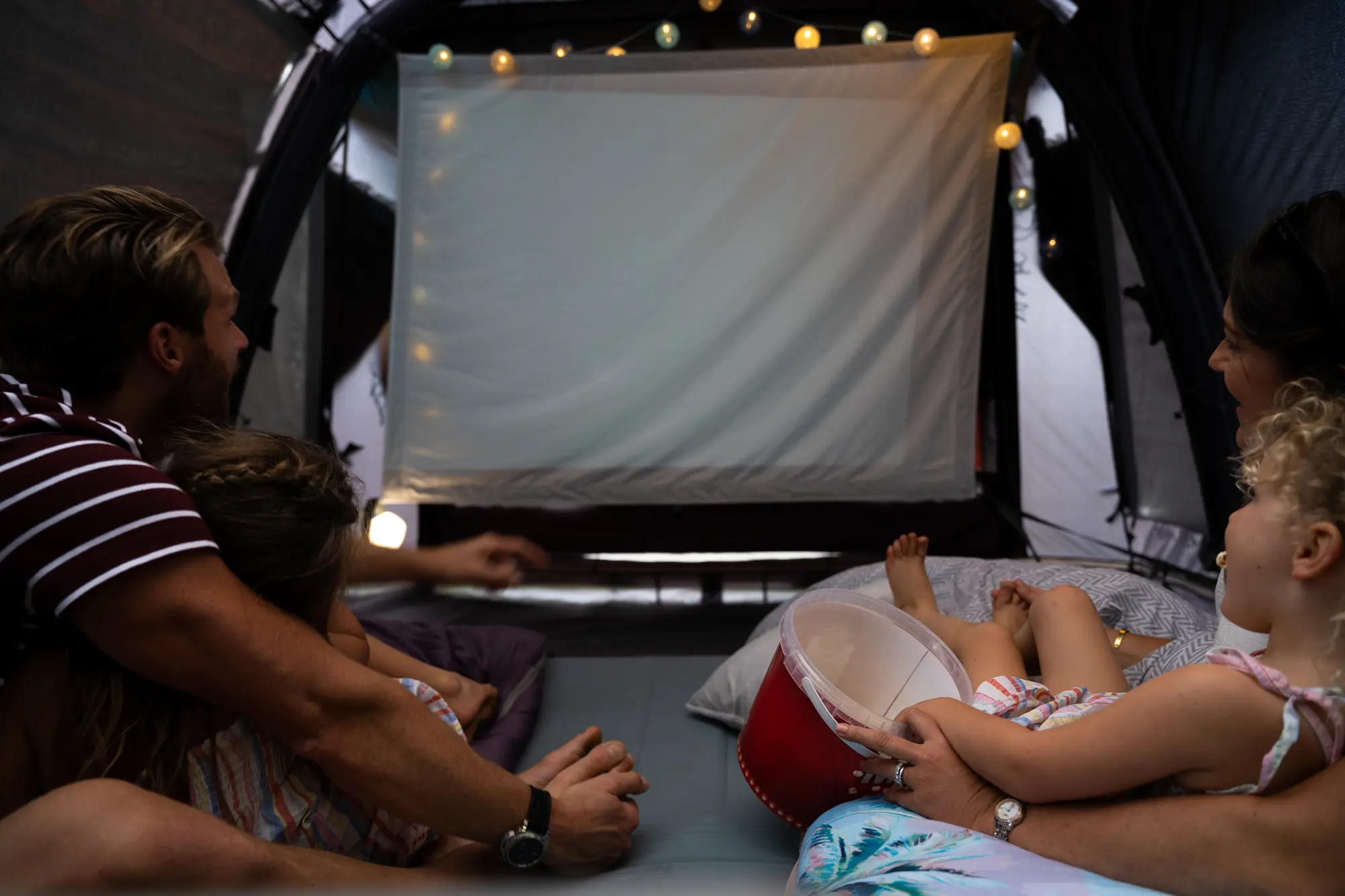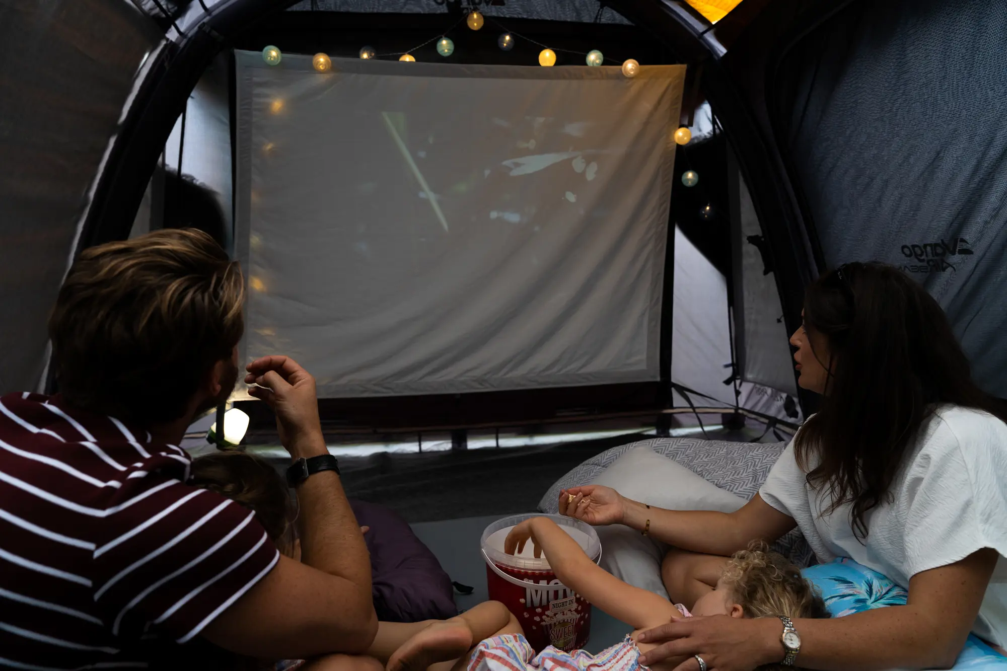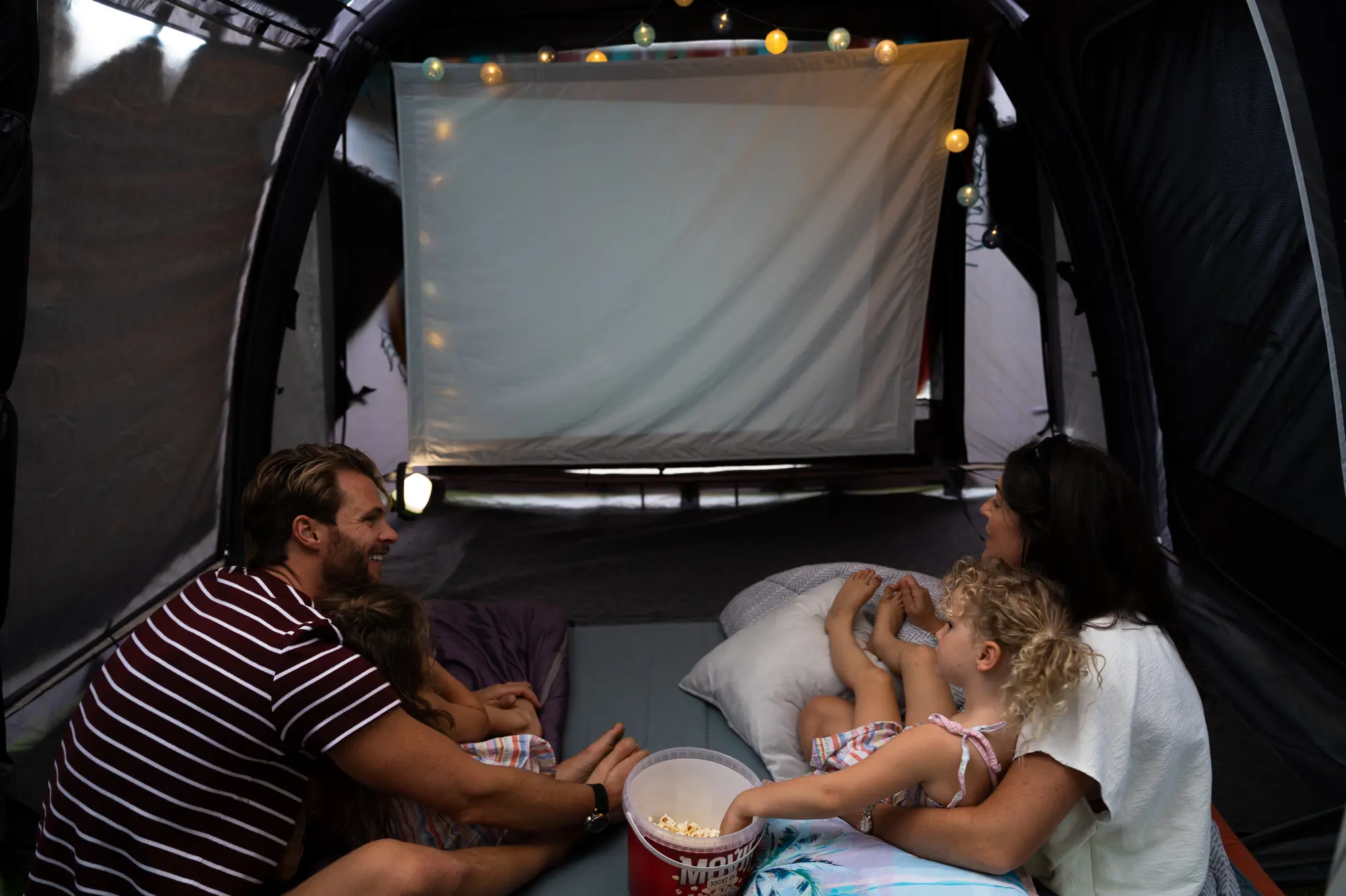 The SkyTrack System, integrated into the Vango Kela Pro, offers versatile hanging points for lanterns, organisers, and other accessories, enhancing the overall functionality and living experience within the awning.