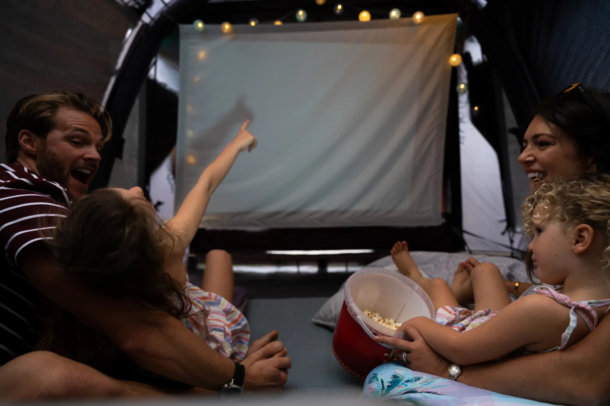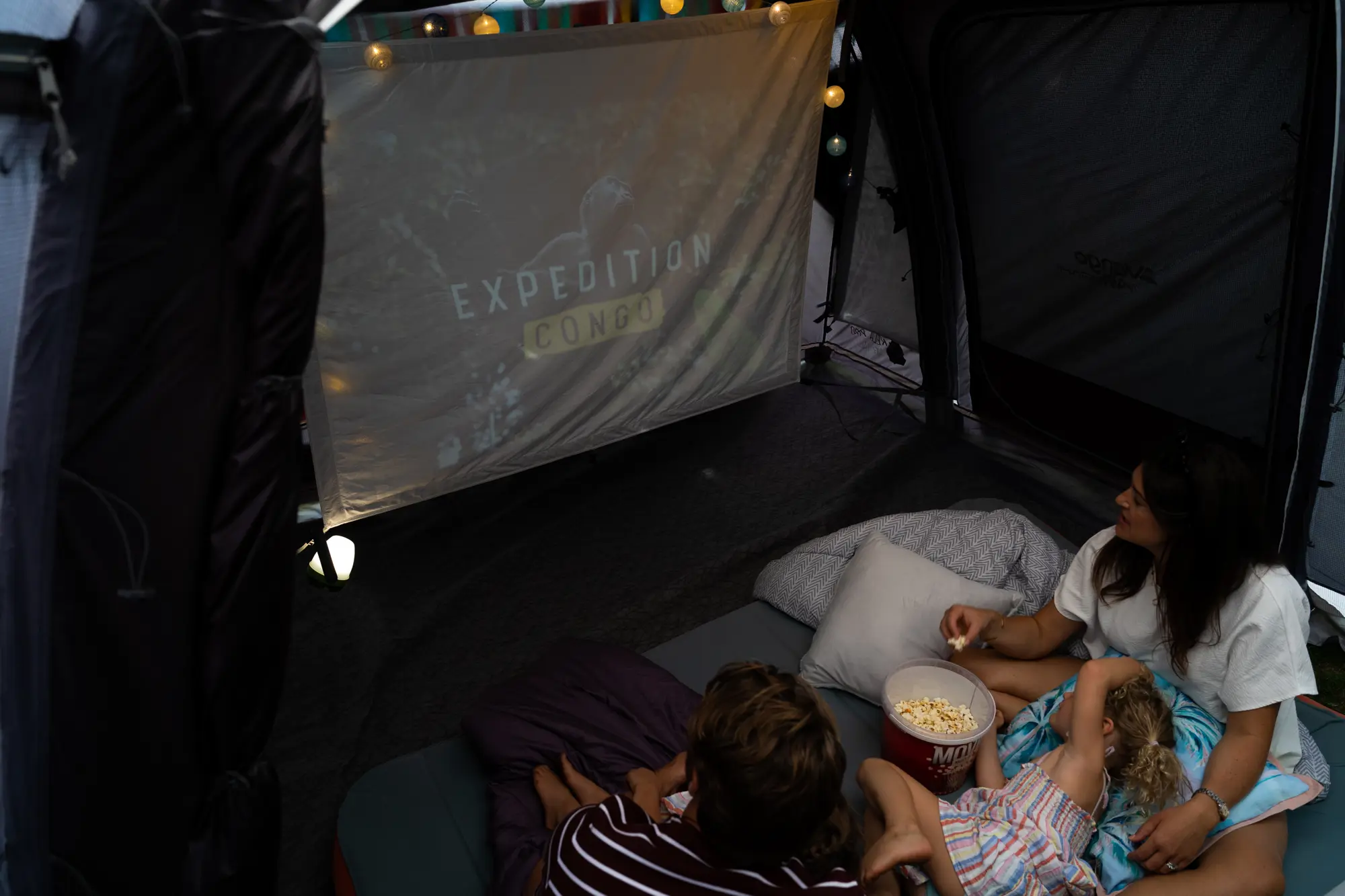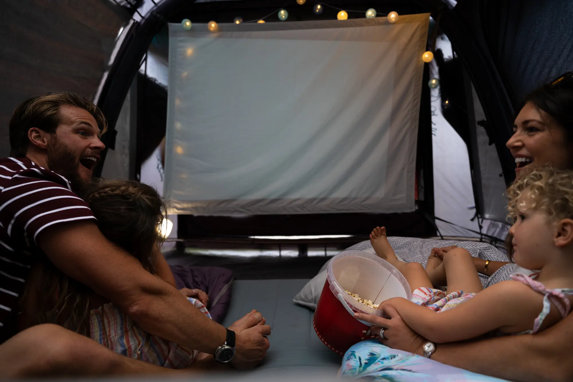 The SkyTrack System, integrated into the Vango Kela Pro, offers versatile hanging points for lanterns, organisers, and other accessories, enhancing the overall functionality and living experience within the awning.