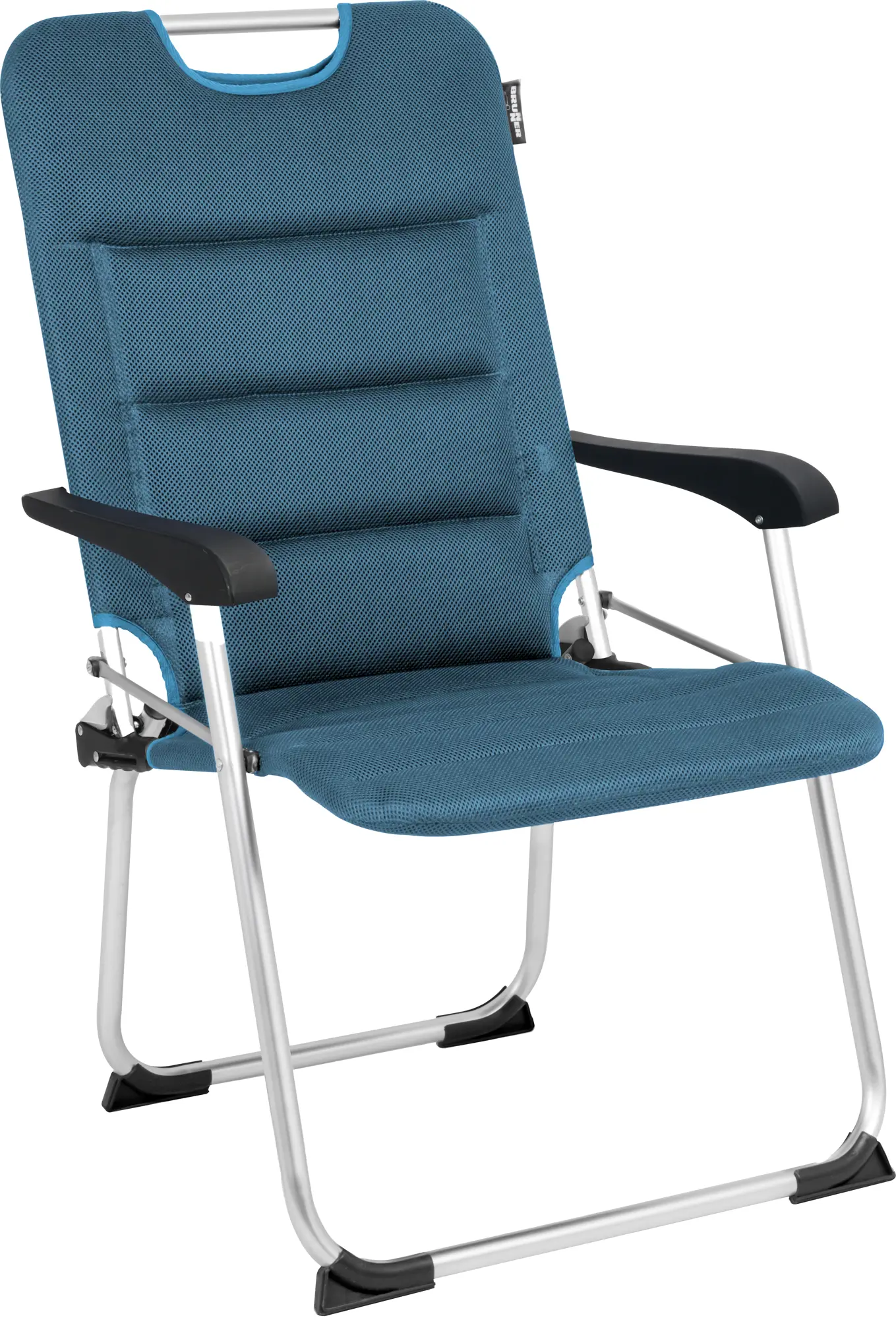 The Brunner Sangria Chair is an ultra-compact folding chair designed specifically for campervans, motorhomes, and camping enthusiasts who need to maximise limited storage space. Weighing just 2.8 kg and folding down to 70 x 58 x 8 cm, this lightweight aluminium-framed chair fits into tight spaces without compromising on comfort or build quality. The unique U-shaped frame design provides excellent stability whilst keeping the overall weight low, and the breathable 3Durafeel polyester fabric offers a comfortable seating experience during extended outdoor use. Available in three colour options (anthracite, blue, and light grey), the Sangria fits different style preferences and vehicle interiors.