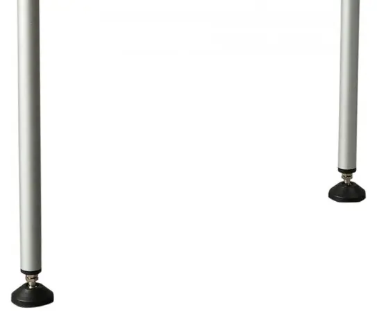 The table top has rounded corners and is made of several layers of fibre glass. There is plenty of legroom under the table, and both the height and the tilt of the four table legs are adjustable – so uneven ground is not a problem.