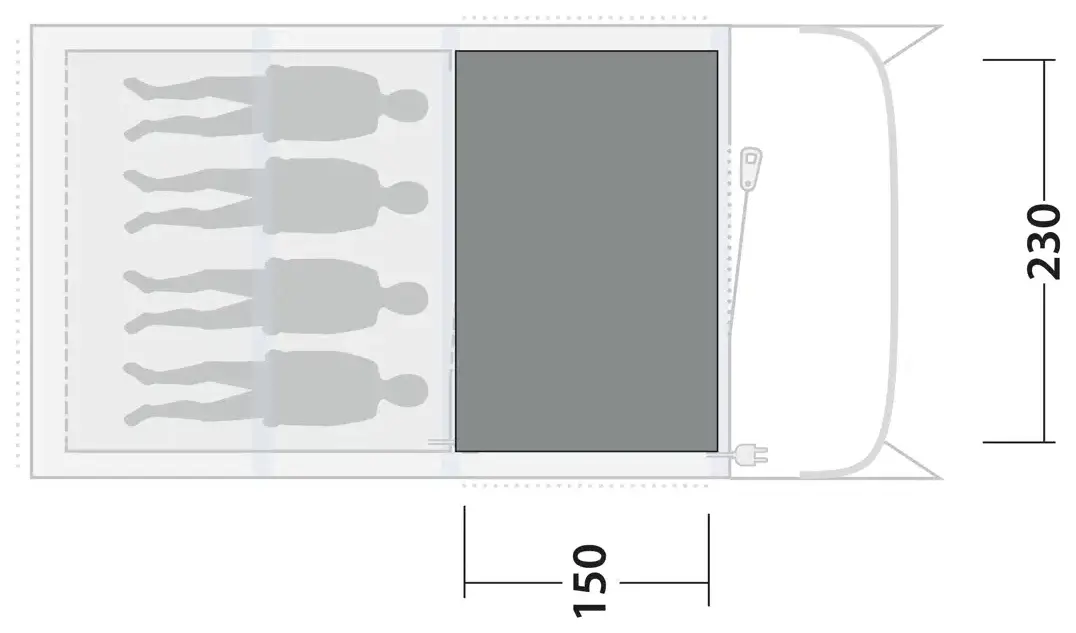 This carpet is specifically designed for the Outwell Monterey 4 Air tent with dimensions of 150 x 230 cm. Outwell manufactures carpets to match each tent model's floor plan precisely, so this will only provide proper wall-to-wall coverage in the Monterey 4 Air. Using it in other models will result in gaps or excess material.
