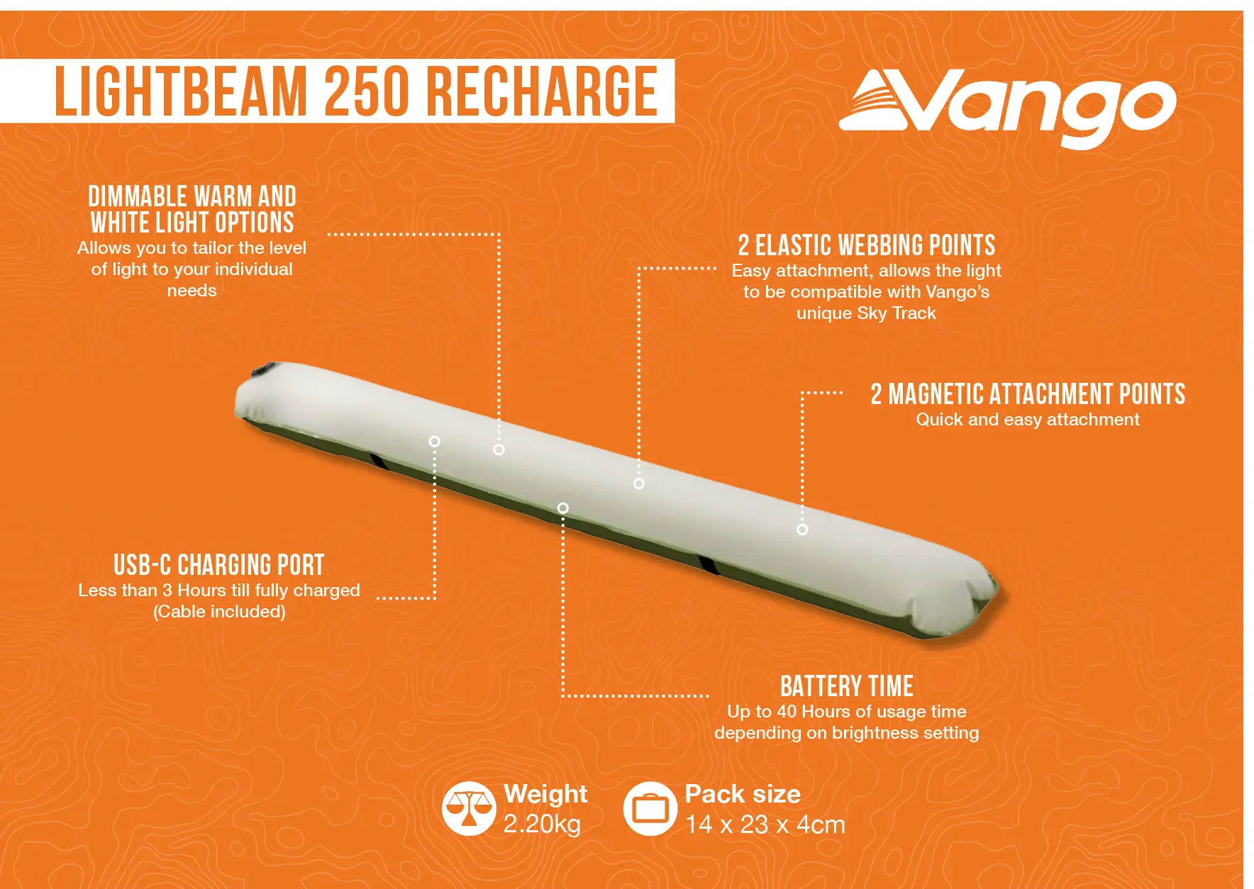 Vango Lightbeam 250 Recharge Features