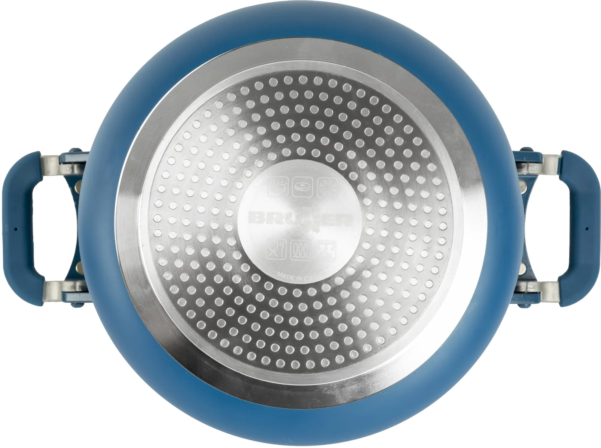 The Brunner Carezza features a PFOA-free ceramic non-stick coating that's scratch-resistant when used with wooden, silicone or nylon utensils. The ceramic surface allows cooking with minimal oil and releases food easily without chemical coatings found in traditional non-stick pans. Whilst the coating resists scratches from normal use, metal utensils and abrasive scourers will affect the surface over time, so stick to soft tools and gentle cleaning for the longest lifespan.
