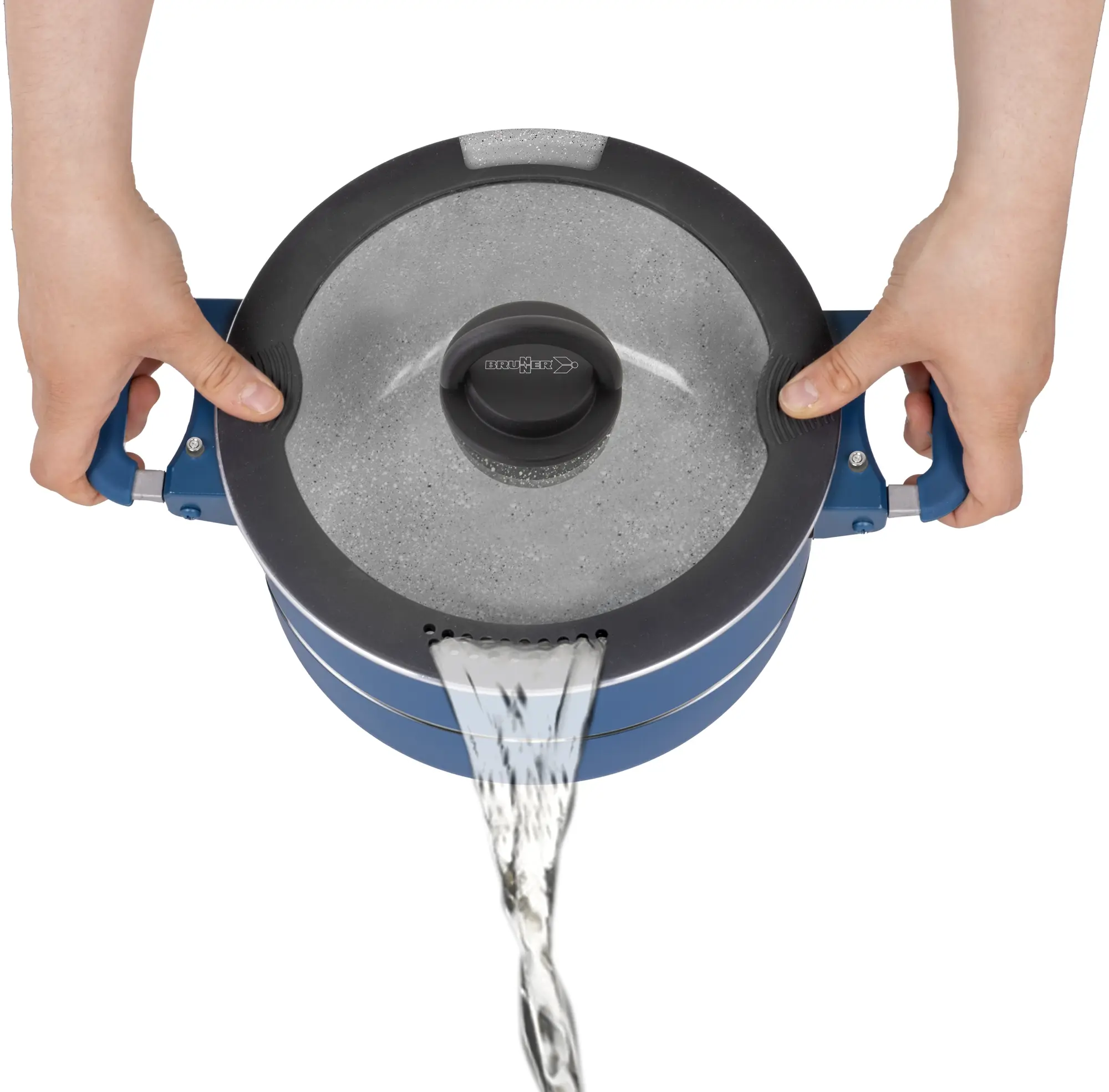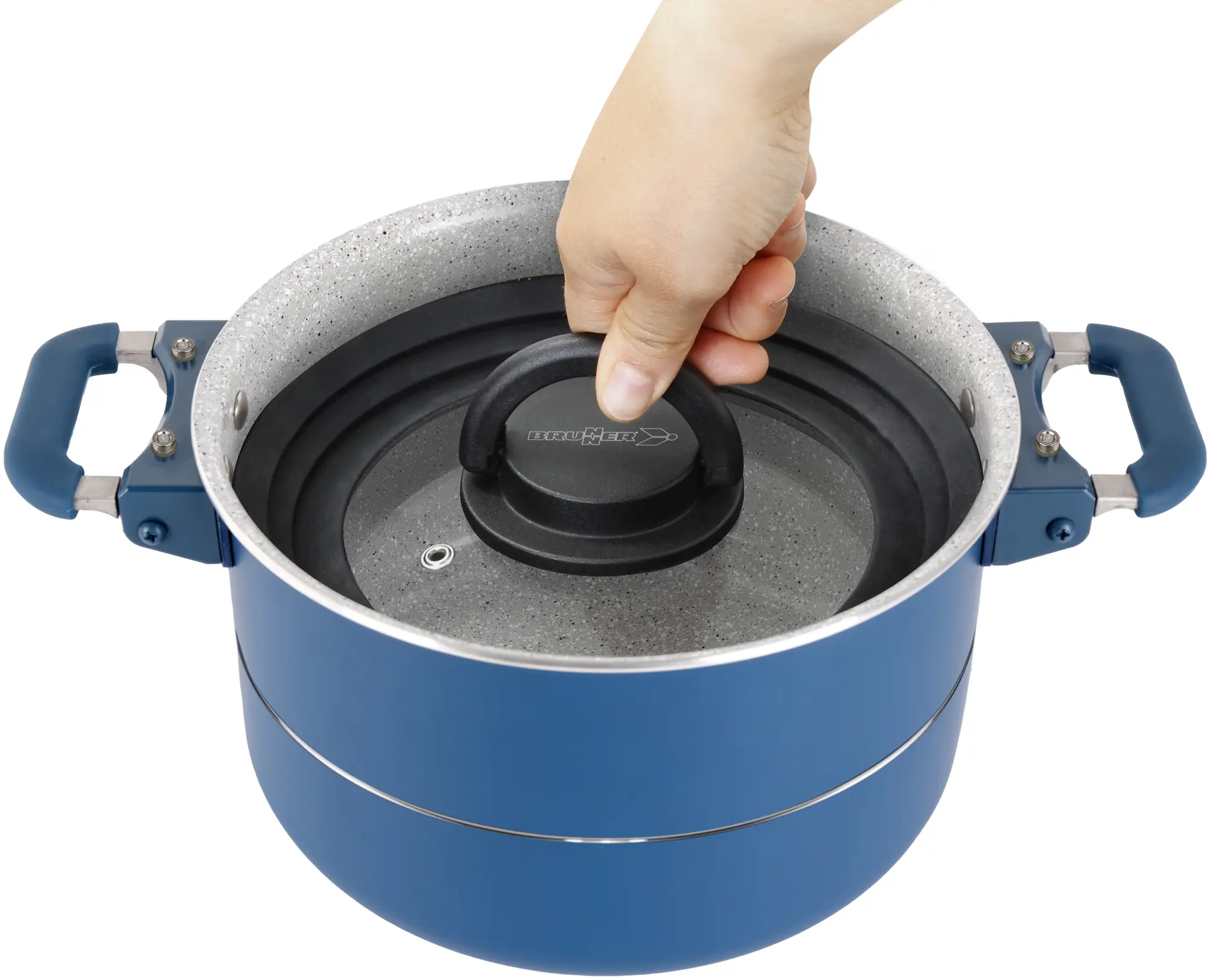 • Large Multi-Fit Lid : Fits 20cm, 18cm and 16cm pots and pans.