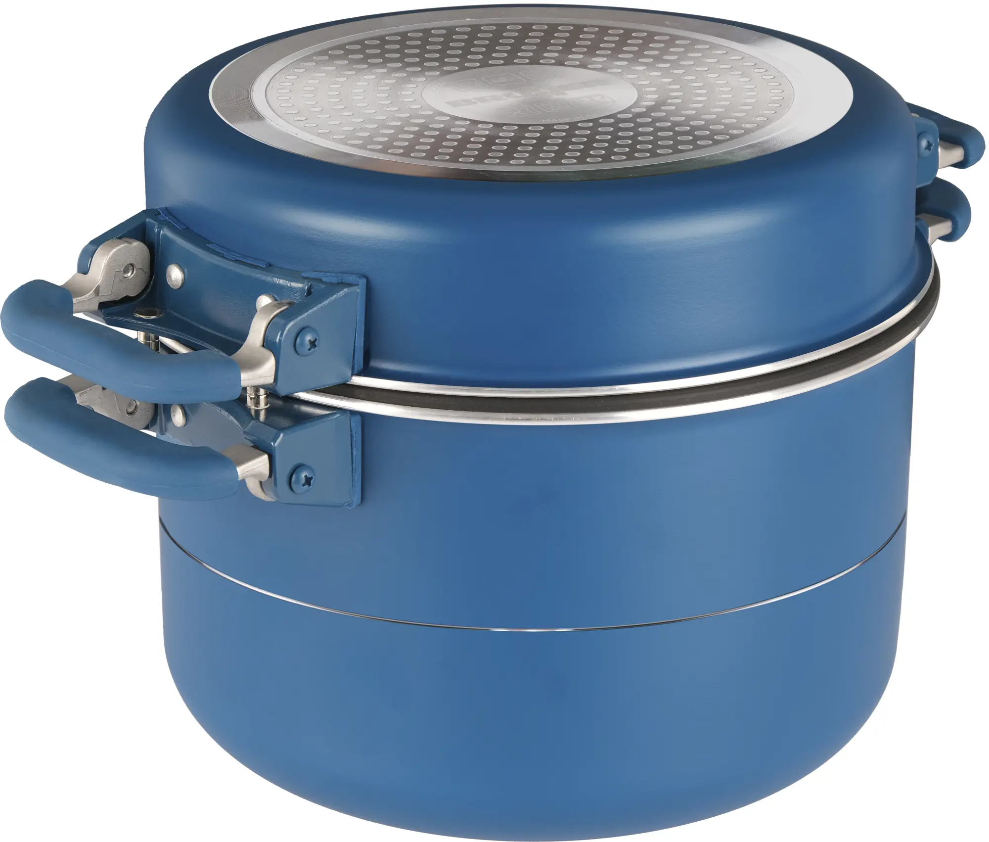 The Brunner Carezza Magnetogrip 7-piece Saucepan Set is designed specifically for motorhome, caravan and boat owners who need full cooking functionality without sacrificing storage space. This aluminium cookware collection includes a 4-litre pot with handles, a 1.4-litre casserole pan, two different pans (one with and one without handles), plus matching lids that fit multiple sizes. The lightweight construction keeps the total weight to just 3.4kg, whilst the ceramic non-stick coating makes cooking and cleaning straightforward with limited water supplies on site.