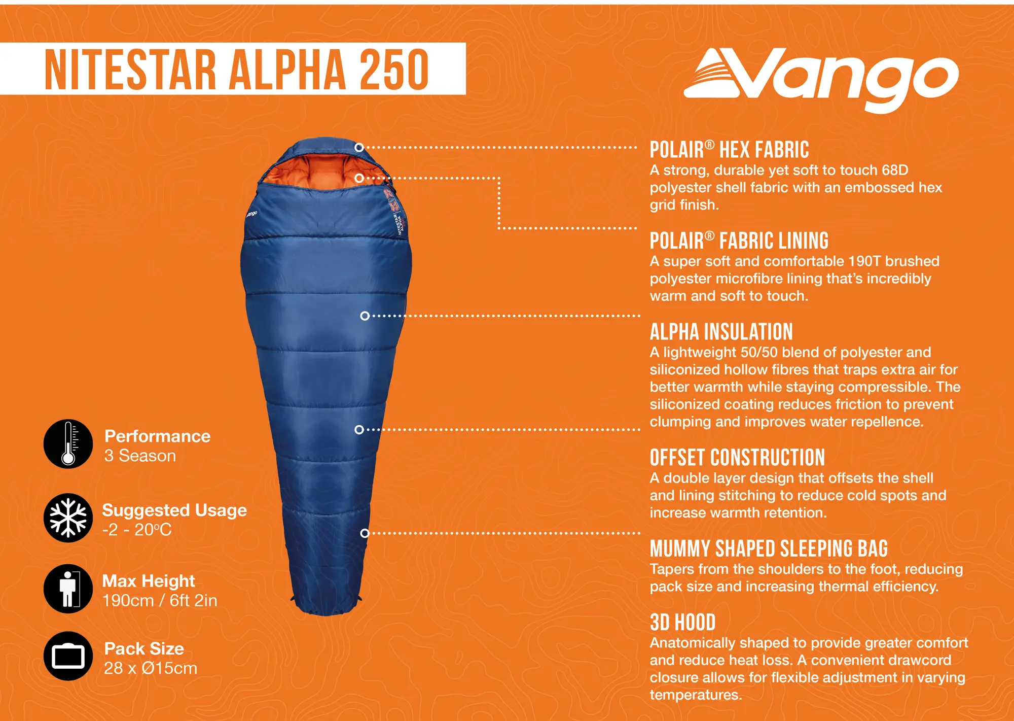 Vango Nitestar Alpha 250 Sleeping Bag Features