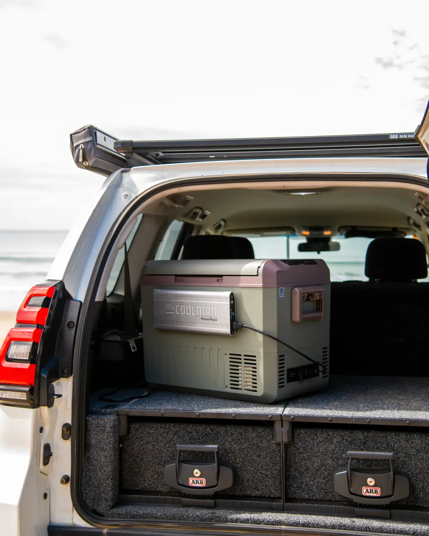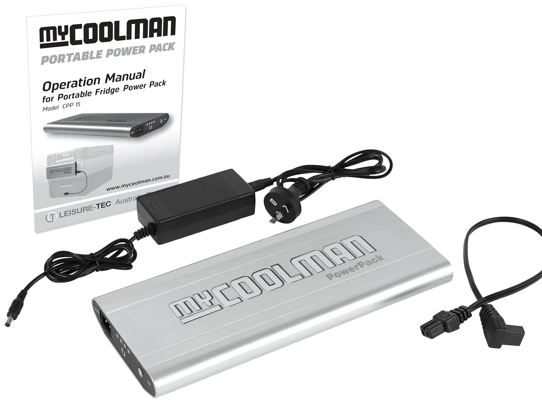 | *Ambient temperature 25°C & Fridge set to 4°C (Freezer to -10°C). PowerPack run times based on myCOOLMAN fridge temperature reaching and running at 4°C with pre-chilled water bottles inside the fridge before connection to fully charged PowerPack. *Not able to securely attach to Recreational 15 / 20. ** Powerpack won't attach securely to the 47L The Roamer Fridge. |