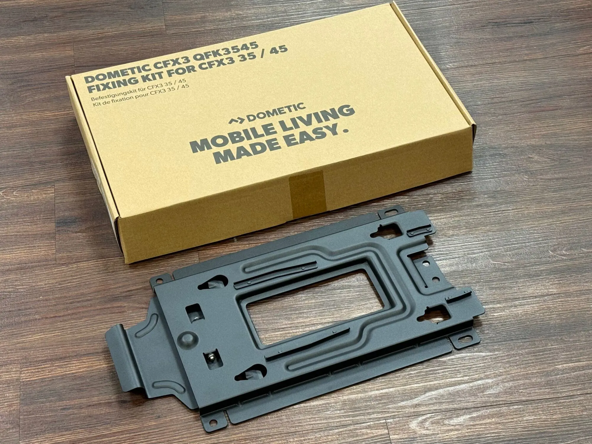 The Dometic Quick Fixing Kit 35/45 is made specifically for the CFX3 35 and CFX3 45 cooler models. It also works brilliantly with CFX2 37, CFX2 45, CFX5 35 and CFX5 45 models. Check your cooler's model number on the rating plate before ordering to confirm compatibility. This kit won't fit larger CFX3 55, CFX3 75 or CFX3 95 models, which need different mounting brackets designed for their bigger footprint.