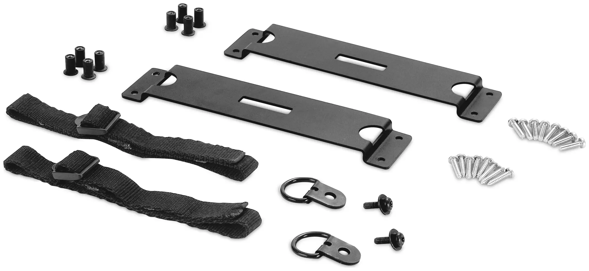 Kit Contents : 2x base plates, 2x adjustable straps, mounting brackets, screws and fixings