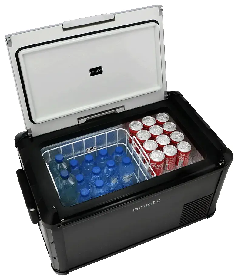 At Mestic, we pay a lot of attention to the user-friendliness of our products. That is why the MCCP-35 compressor cool box has two 12-24 V connections: one on both sides. The lid can be opened on both sides, and it can be fully removed. That way, you will always have easy access to cooled food and beverages. Since this Mestic cooler has integrated 12-24 V and 100-240 V connections, you will no longer need a separate 230 V adapter. You will also benefit from helpful extras, such as a removable wire basket and interior lighting.