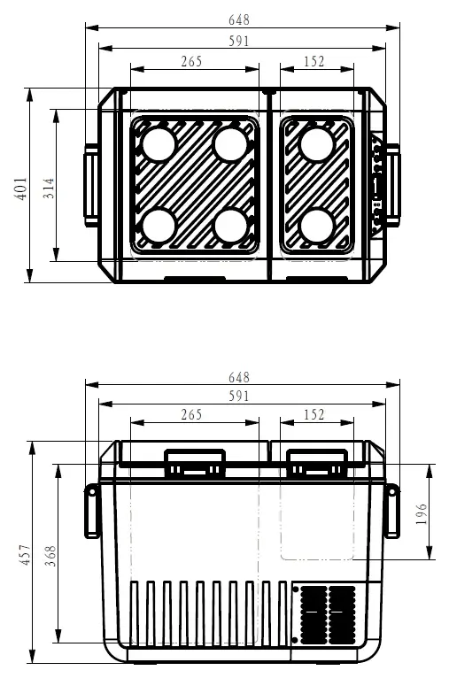 | Fridge Dimensions (mm) | L 648 x W 401 x H 460 (Including Handles) |