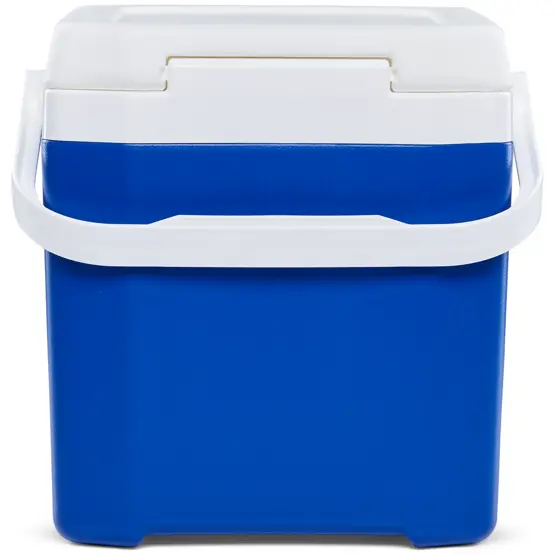 The compact vertical design with dimensions of 29.5cm x 31.5cm x 32cm makes it perfect for caravans and motorhomes where space is limited. It provides extra cold storage for drinks and snacks without taking up valuable fridge space, and the 1.4 to 1.6kg weight means it's easy to move between your vehicle and pitch. The 31.5cm width allows it to fit in narrow storage areas or alongside seating, and the rigid handle makes transport straightforward during rallies or stopovers.