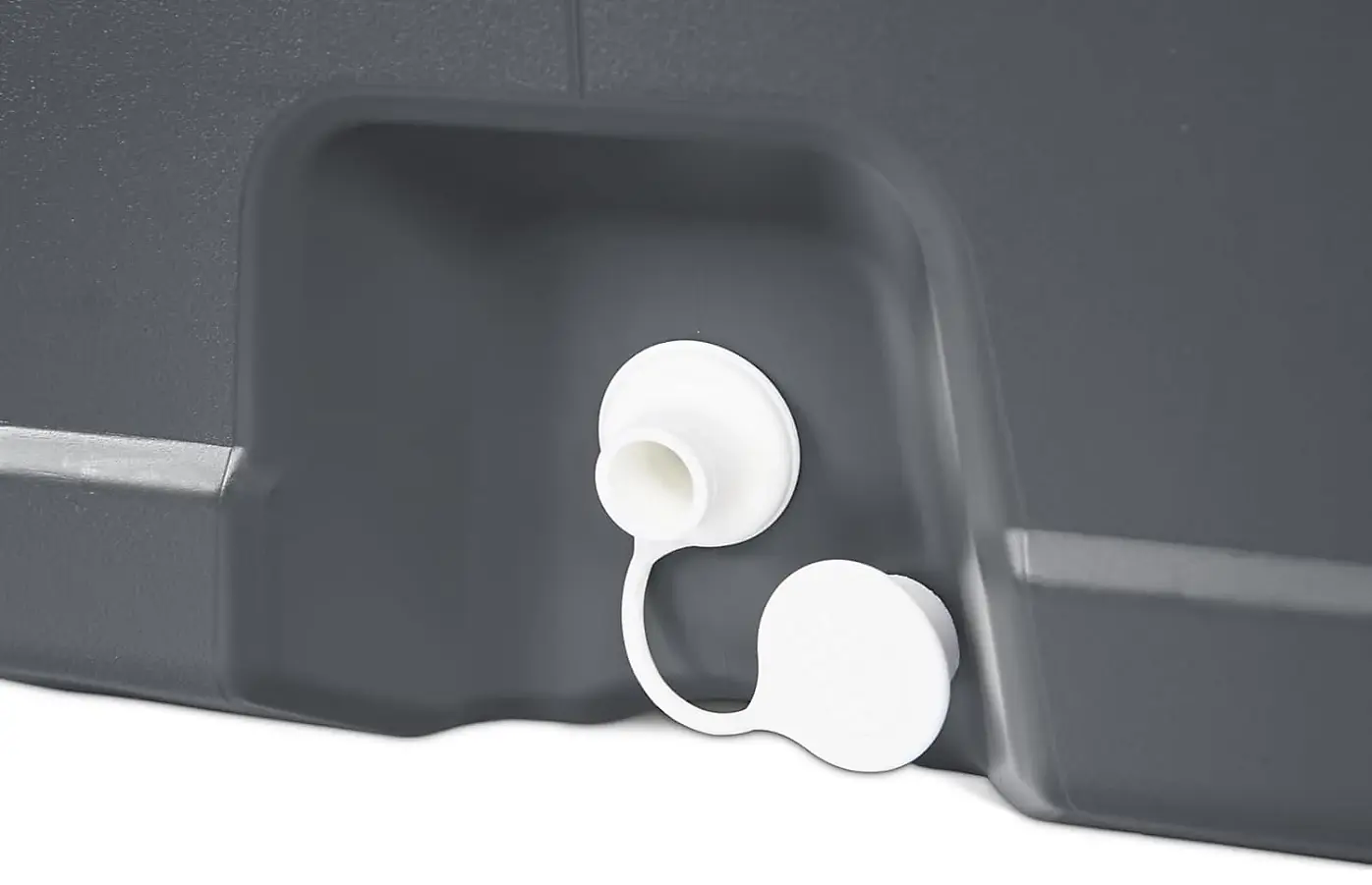 • Threaded Drain Plug : Connects to a standard hose for quick and easy emptying without lifting or tipping