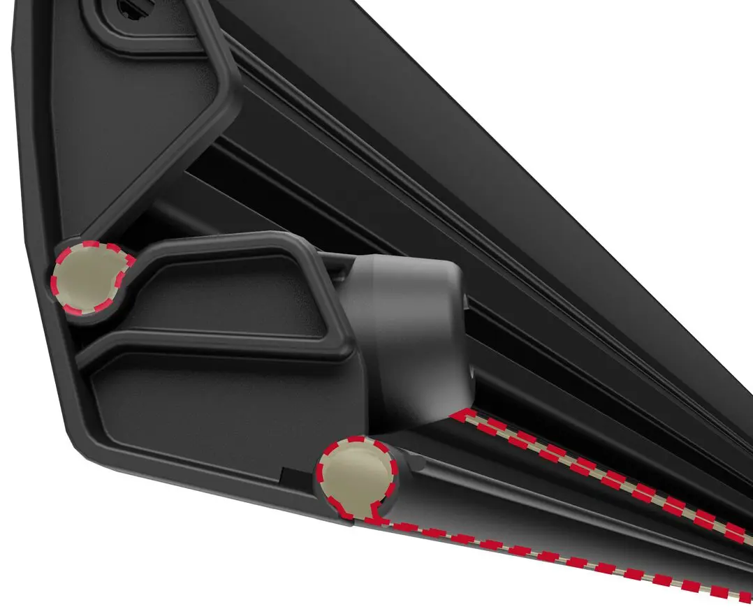 The F43van unrolls in an overhand motion, which means the fabric rolls out over the top of the case box rather than underneath. This unrolling method maintains constant tension on the fabric throughout the extension process, preventing sagging and keeping the canopy taut and secure in all positions. The awning operates via a winding handle with a magnetic catch concealed in the cover, making the opening and closing process smooth and straightforward whilst keeping the fabric perfectly tensioned.