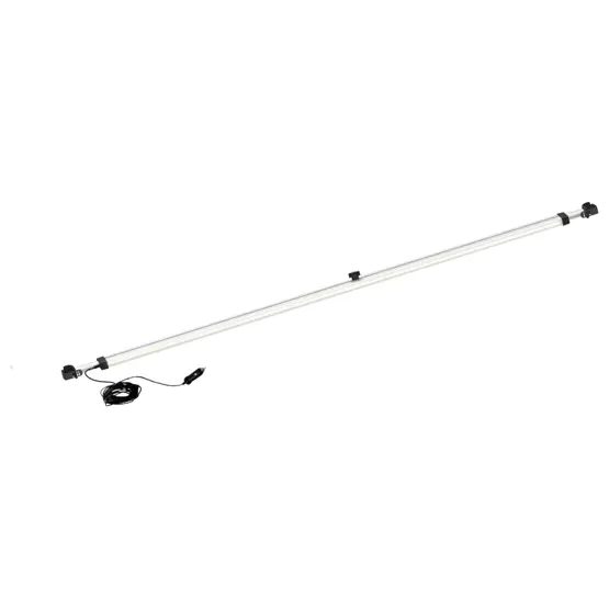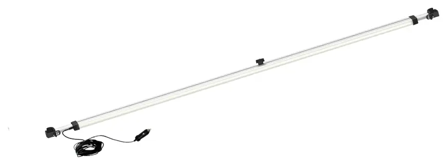 The Fiamma Rafter LED Van clips directly onto the arms (rafters) of your Fiamma awning, keeping the fabric taut and the light strip securely positioned. It comes supplied with a 5-metre cable and plug that connects to your motorhome's 12V cigarette lighter socket, so installation is straightforward without permanent wiring. The telescopic design adjusts between 130cm and 232cm to fit your awning width perfectly.