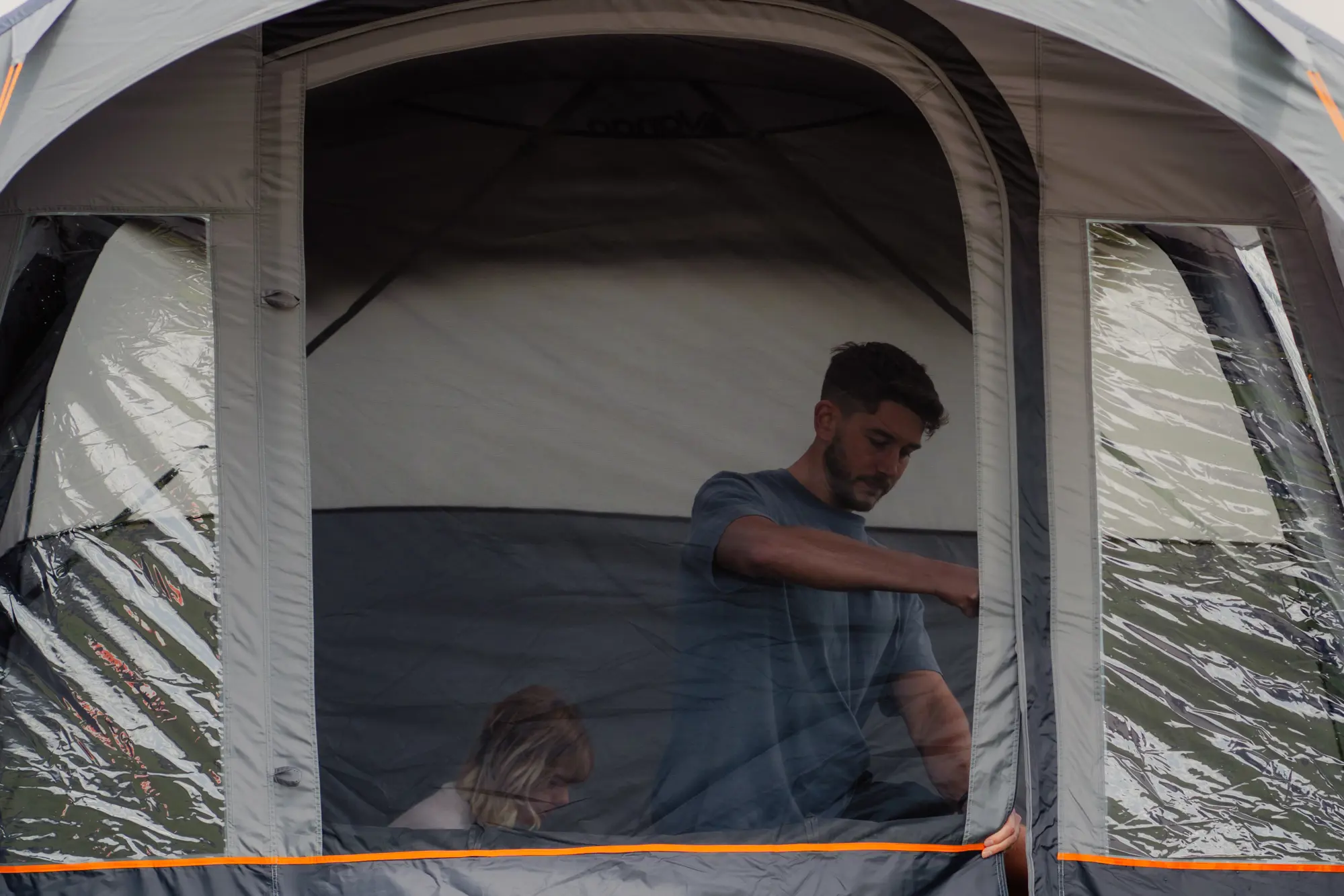 The Vango Galli CC II Air Driveaway Awning doesn't just offer shelter, it is designed to be a hub of comfort and convenience. The pre-attached front canopy serves as a versatile space for socialising or enjoying some quiet time, with the ability to fully close. Diamond Clear Windows maximise light and visibility, creating an inviting and airy interior. For those unpredictable weather conditions, the TBS®II Tension Band System ensures the awning remains stable and secure, while the mesh front door provides bug-free ventilation, allowing you to enjoy the fresh air without unwanted guests.