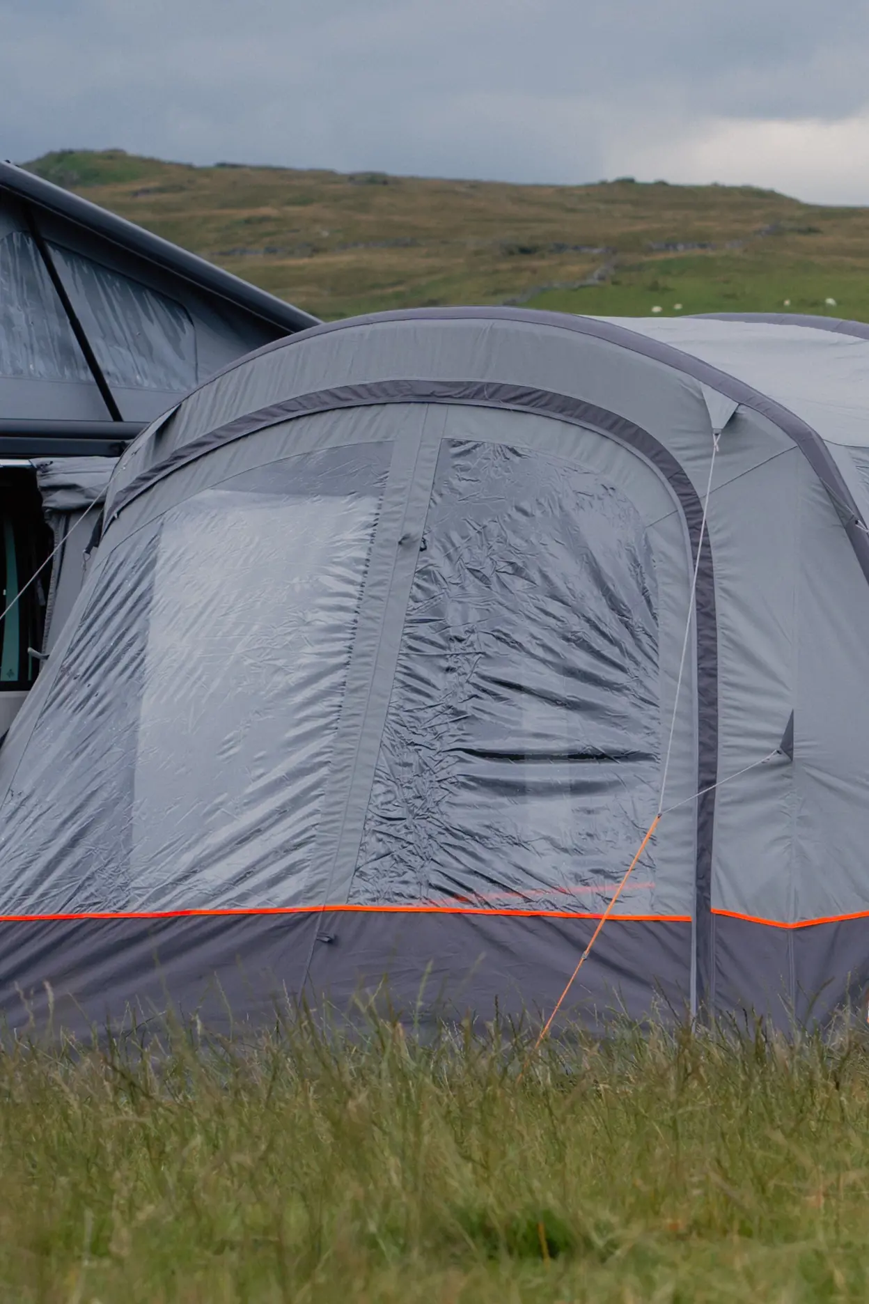 Accessibility and practicality are at the heart of the Vango Galli CC II Air Driveaway Awning's design. Easy access doors offer flat entry, making the awning accessible to everyone, including those with reduced mobility, wheelchairs, or prams. The tunnel adjustment strap aids in achieving a neat fit to your vehicle, enhancing the overall appearance and efficiency of the setup. For those moments when you wish to explore without the awning, the Drive Away feature allows you to detach the tunnel area and leave the awning free-standing, ensuring a hassle-free return to your cosy setup.