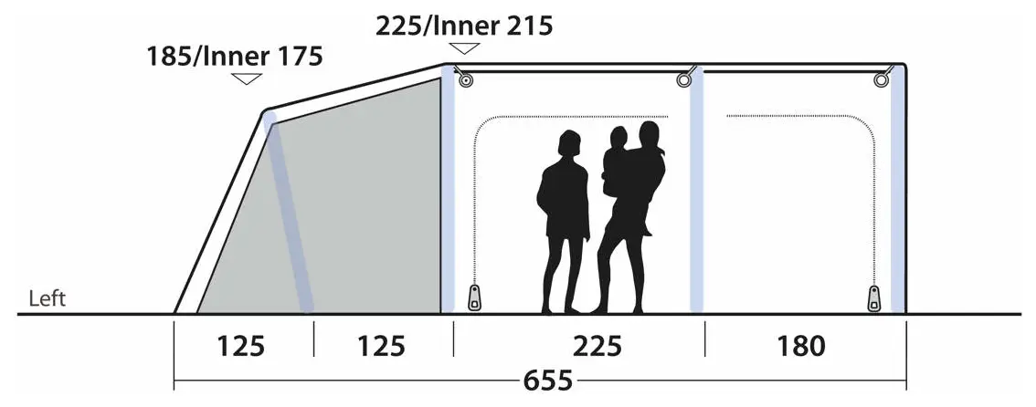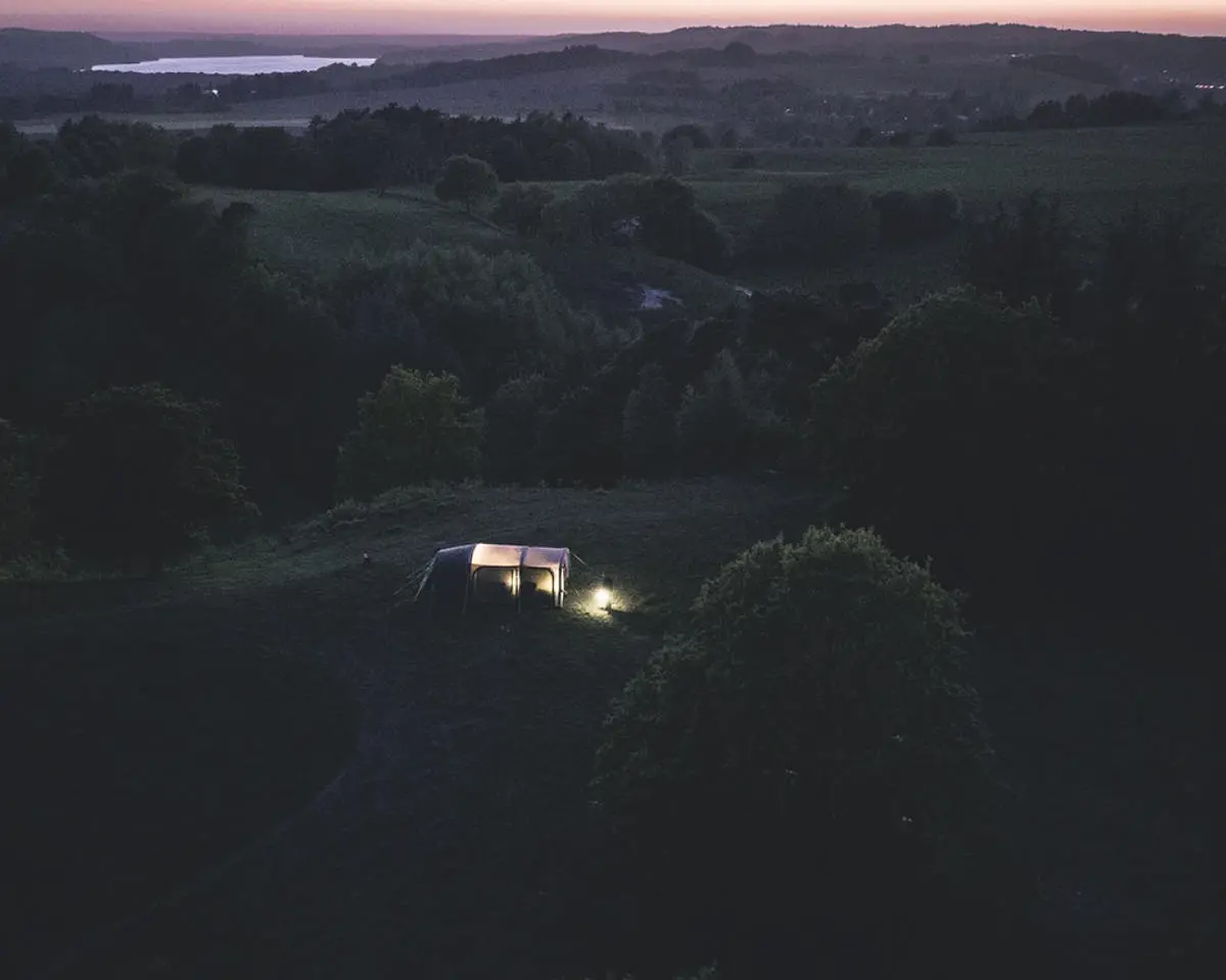 Integrated lighting made easy – OLS features a 5 mm COB LED light strip built into the HookTrack system for seamless installation. A soft-touch, backlit switch offers three dimmable settings (100%, 50%, 5%) and is discreetly positioned for easy use in both air and poled tents.