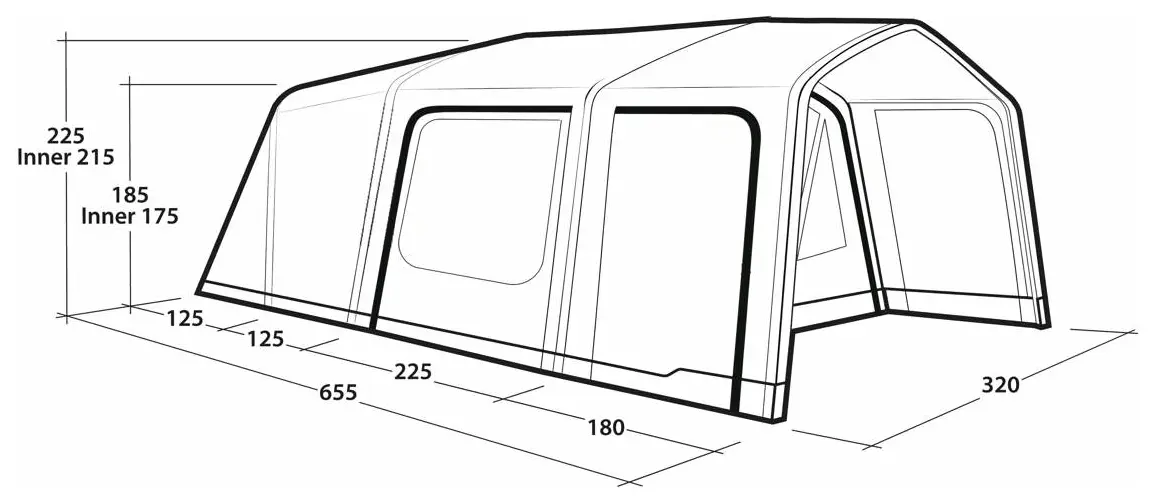The Iowa 5 Air can be pitched and weather-ready in approximately 10 minutes using the DuraAir tube system and included pump. This is the time to get the tent inflated, staked down and ready to use. For a complete pitch including all guy lines, interior setup and final adjustments, allow around 22 minutes. These timings assume you've pitched the tent at least once before and know where everything goes.