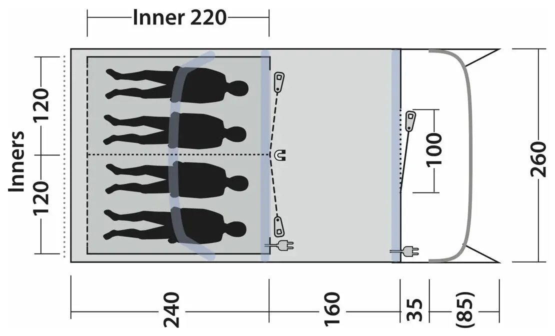 • Reliable, easy-to-operate inflate/deflate valves conveniently placed outside the flysheet
