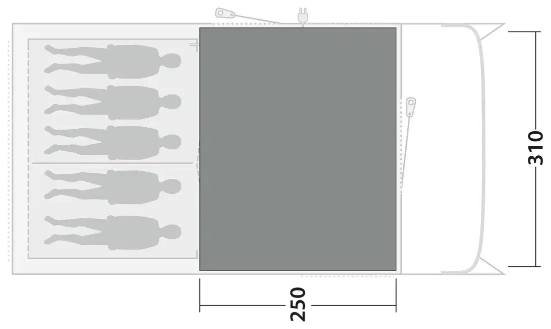 While the carpet is manufactured for the Edmonds 6 tent's specific dimensions, you could use it in other spaces if the measurements work. The 250 x 360 cm size would suit awnings or tents with similar floor dimensions, though the corner attachment points are positioned for the Edmonds 6 layout. It won't fit other Outwell tent models like the Flagstaff or Hornet series which have different floor shapes.