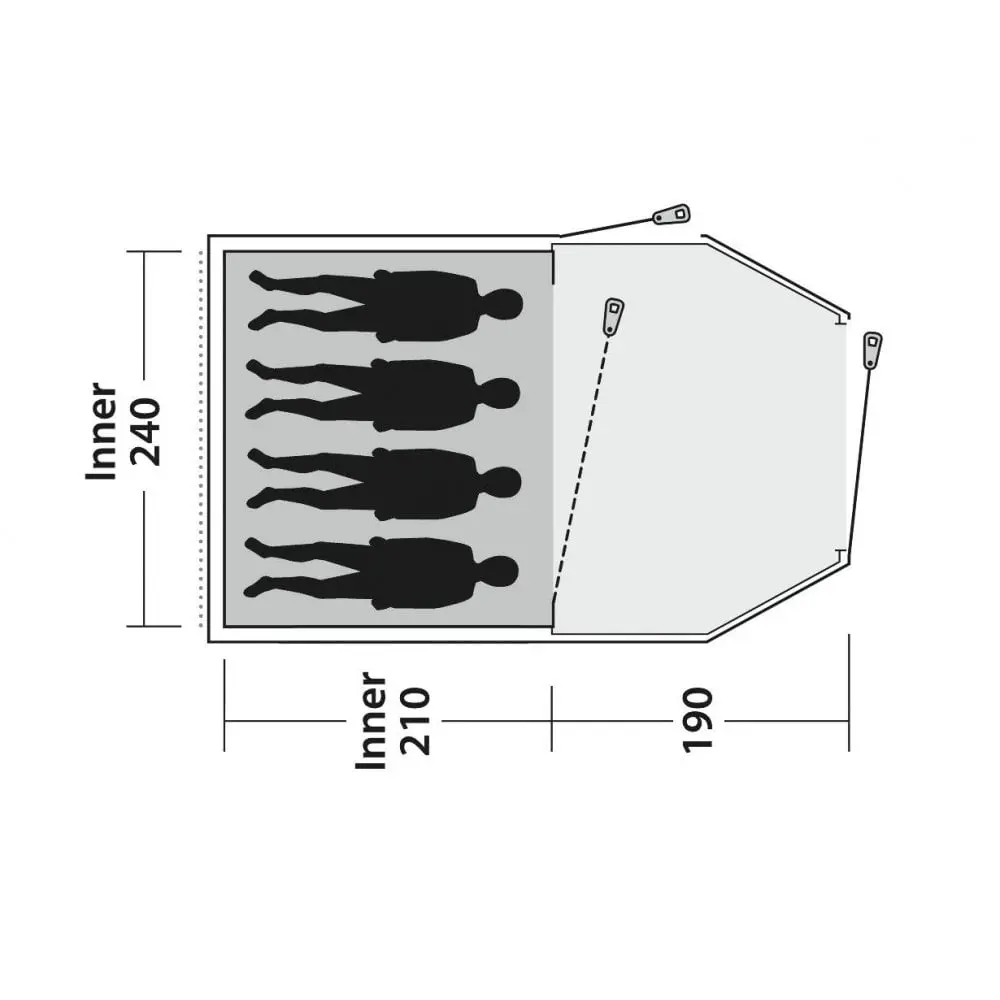 | Persons | 4 | Tent berth indicates how many people your tent can accommodate for sleeping. The industry standard allocates about 60cm of width per occupant, though exact dimensions can vary by manufacturer. If you prefer extra elbow room, you may want a tent berth larger than your headcount. Many campers size up by one or two berths to improve comfort on longer trips. |