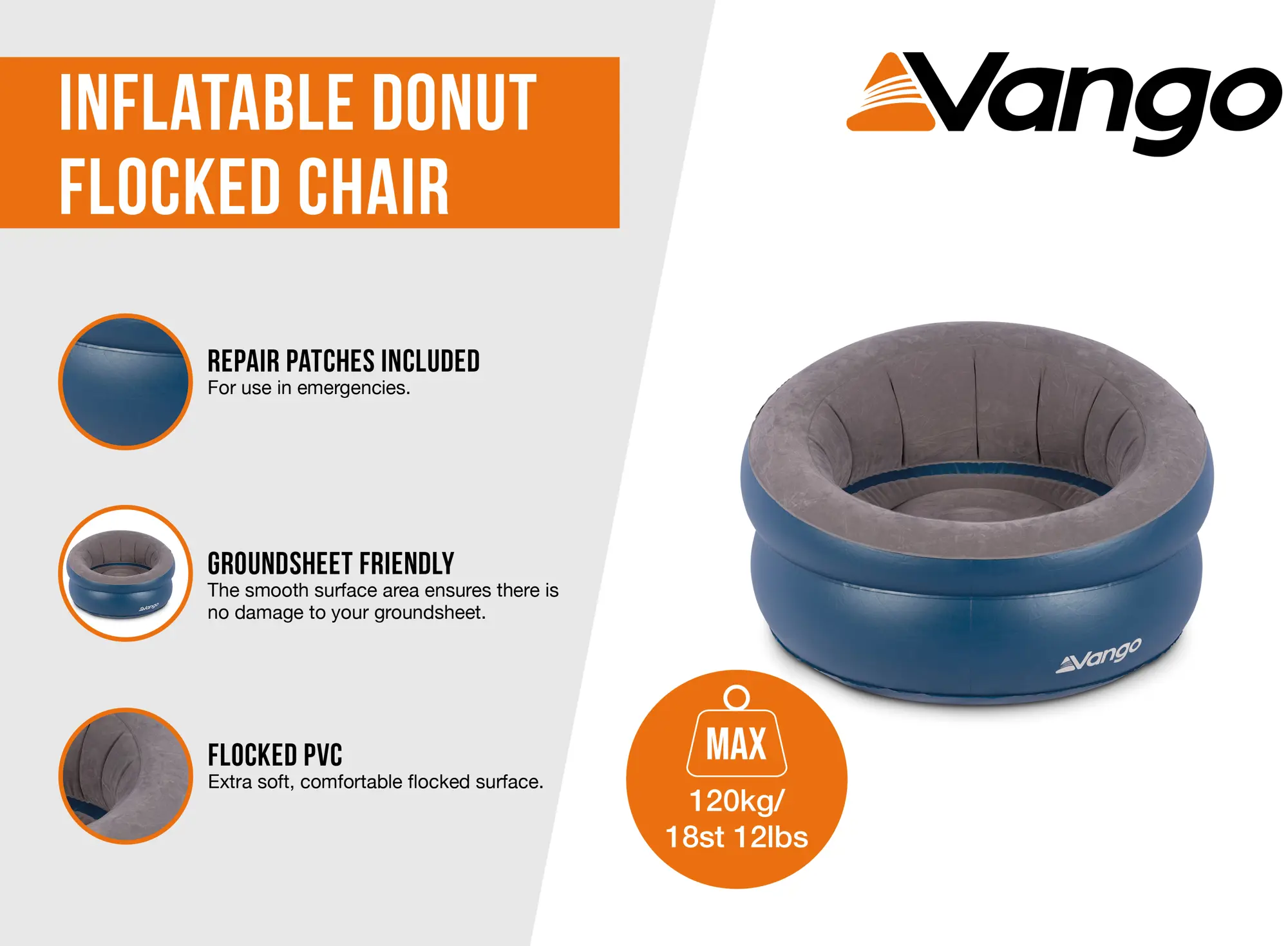 Just need a cozy place to unwind, the Vango Inflatable Donut Flocked Chair is the perfect for unwinding. This unique chair is made from flocked PVC materials, making it extremely durable and perfect for relaxing both inside and out. The fun and comfortable rounded cushion seat is perfect for lounging on the campsite or in your backyard.