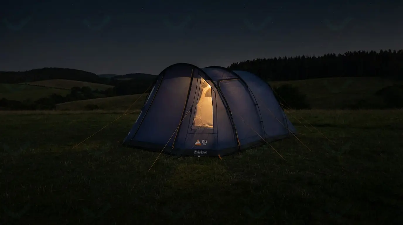 The Vango Iris 500 is a tunnel tent that uses Powerflex Fibreglass poles and sleeps five people across two separate bedrooms. It's built around Sentinel Essential fabric rated at 3,000mm hydrostatic head, with fully taped seams and a sewn-in groundsheet that creates a sealed environment from below. The tent structure relies on pre-angled poles that increase internal space whilst providing wind resistance, supported by the TBS II Tension Band System that braces poles at three points to reduce lateral movement during gusts.
