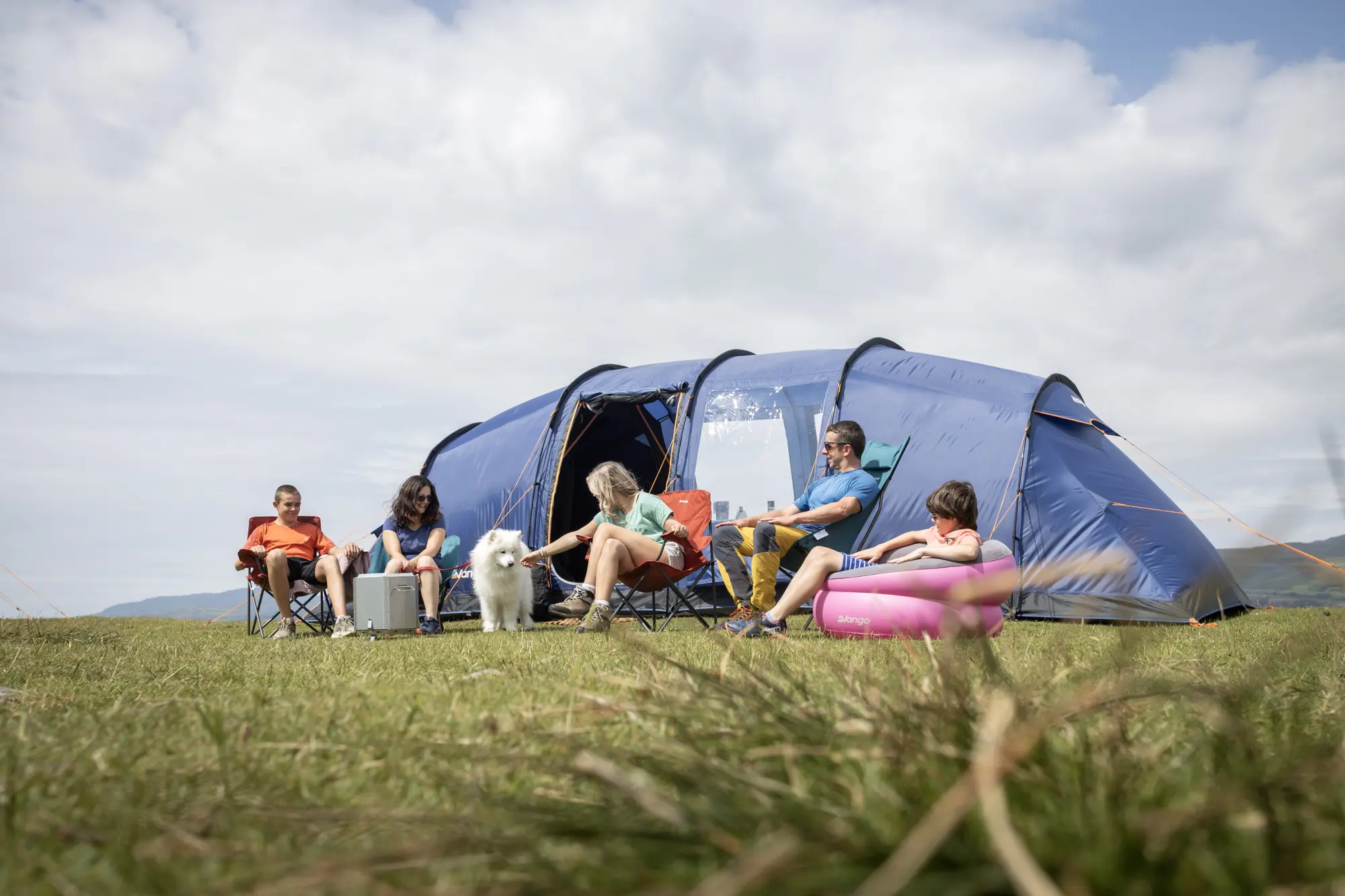 The tent comes with high-visibility guy lines that fade from dark to bright orange, making them easier to spot at night. An oversized carry bag makes packing easier. While fibreglass poles are a little heavier than newer materials, they’re strong, reliable, and perfect for car campers. Vango’s pre-angled pole design maximises internal headroom, giving a more spacious feel than traditional curved poles. The adjustable pegging system ensures a secure pitch even on uneven ground, and all flysheet seams are fully factory-taped for dependable weather protection. Side doors can be paired with king poles to create a handy sheltered porch area (sold separately), adding extra versatility to your setup. The fabric meets EN5912 fire safety standards, and the durable PE groundsheet easily stands up to regular foot traffic.