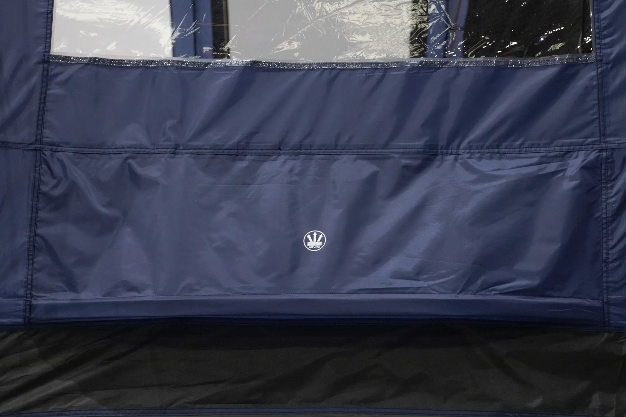 Vango AirZone uses ventilation panels positioned at both high and low points in the tent to create airflow through convection. Warm air rises and exits through upper vents while cooler air enters through lower openings, establishing a circulation pattern. This reduces condensation buildup that occurs when warm breath and body heat meet cooler tent fabric. The system is passive - it works without fans or power - and the Diamond Clear windows also contribute to air movement when opened.