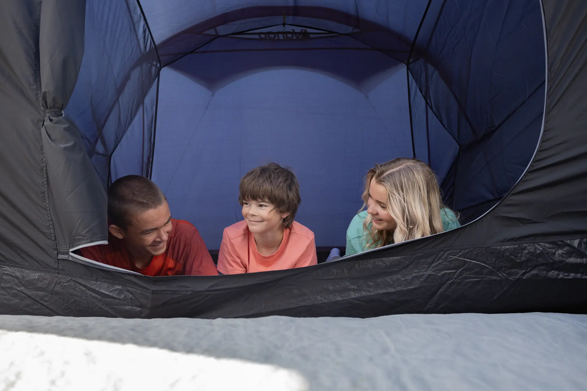 Vango's Lights-Out coating blocks approximately 80% of incoming daylight by using a darker fabric treatment on the bedroom inners. It won't create complete darkness but does reduce the early sunrise glow enough to help young children and light-sensitive sleepers stay asleep longer during summer months when dawn breaks around 4-5am. The technology is most noticeable in June and July when daylight hours are longest.