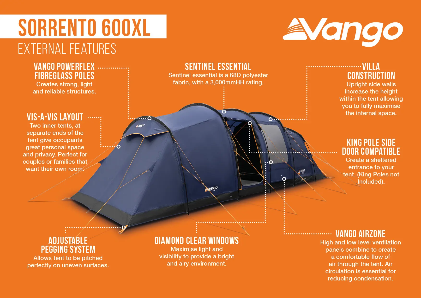Vango Sorrento 600XL Poled Tent Features