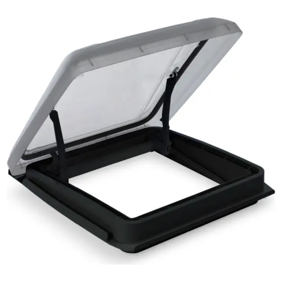The MPK VisionStar M Pro with Airflow is a double-glazed caravan rooflight designed for roof thicknesses between 25-60mm. This smoked dome rooflight opens to 70 degrees with single-hand operation, making ventilation adjustments simple while you're inside your caravan. The flat profile design sits just 80mm above your roof surface, reducing wind resistance and maintaining your vehicle's streamlined appearance.