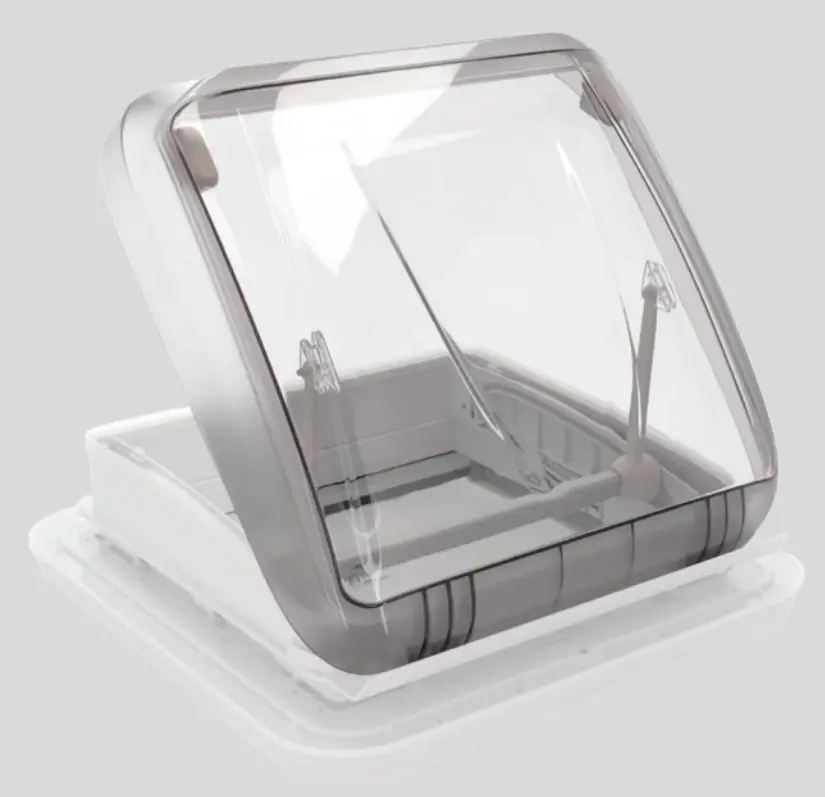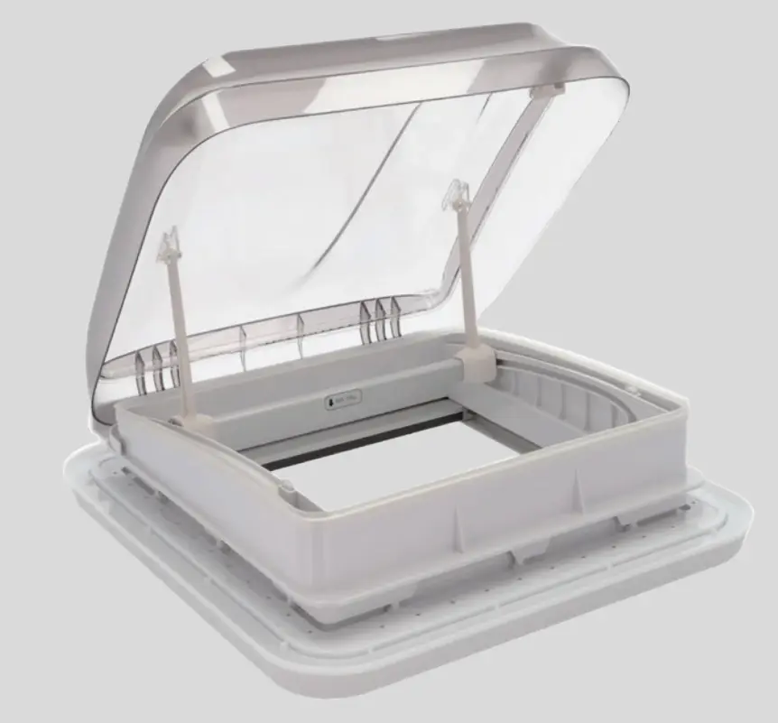 The Sky Dome 4 uses impact-resistant acrylic glazing rather than polycarbonate. Acrylic provides excellent light transmittance, stays clearer over time without yellowing, and weighs less. Acrylic is also more scratch-resistant and maintains a beautiful high-gloss finish. The impact-resistant modification in this rooflight combines acrylic's clarity advantages with enhanced durability for motorhome use.