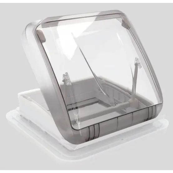 The aerodynamically shaped acrylic cover reduces wind resistance and noise when driving at motorway speeds. This design minimises drag, which can help improve fuel efficiency compared to box-shaped rooflights. The streamlined profile also reduces wind whistle and vibration noise inside your vehicle. The 12cm closed height keeps the overall roof profile low whilst the dome extends to 41cm when fully open.