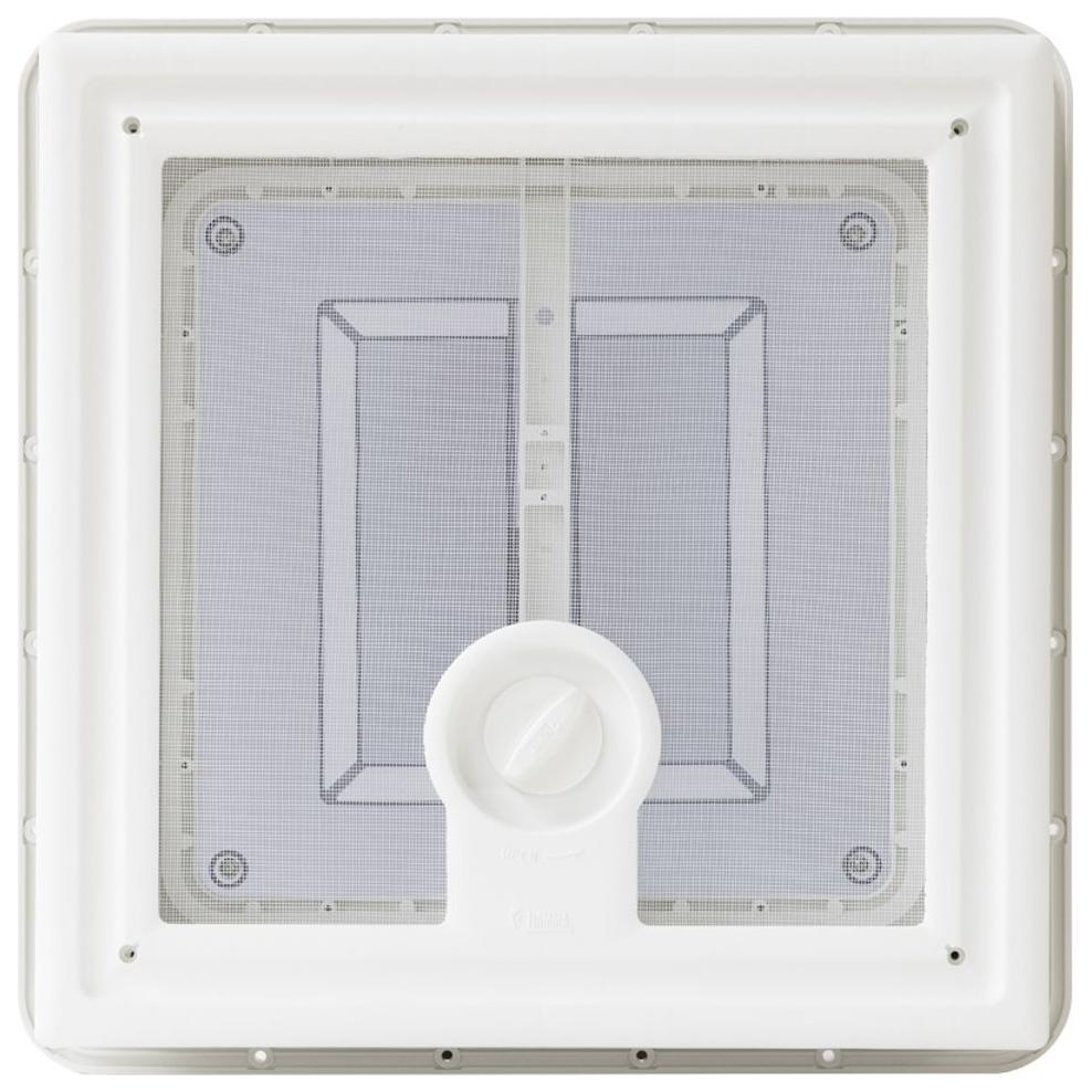 The Fiamma Rooflight Vent 40 Crystal is a 400 x 400mm roof vent built for caravans, motorhomes and van conversions. It's manufactured in Italy by Fiamma and features a translucent tintedor white dome that allows natural daylight into your vehicle while providing permanent ventilation through a fixed airflow channel. The outer dome measures 455 x 455mm, and it fits a standard 390 x 390mm roof cut-out. An integrated aluminium mosquito net sits below the dome, keeping insects out while air circulates freely. The vent opens and closes with a handwheel, and a centre support arm holds it steady at your chosen position. Fiamma's patented rubber seal system keeps rainwater out, and the whole unit is made from UV-resistant materials rated to TUV and ABE safety standards.