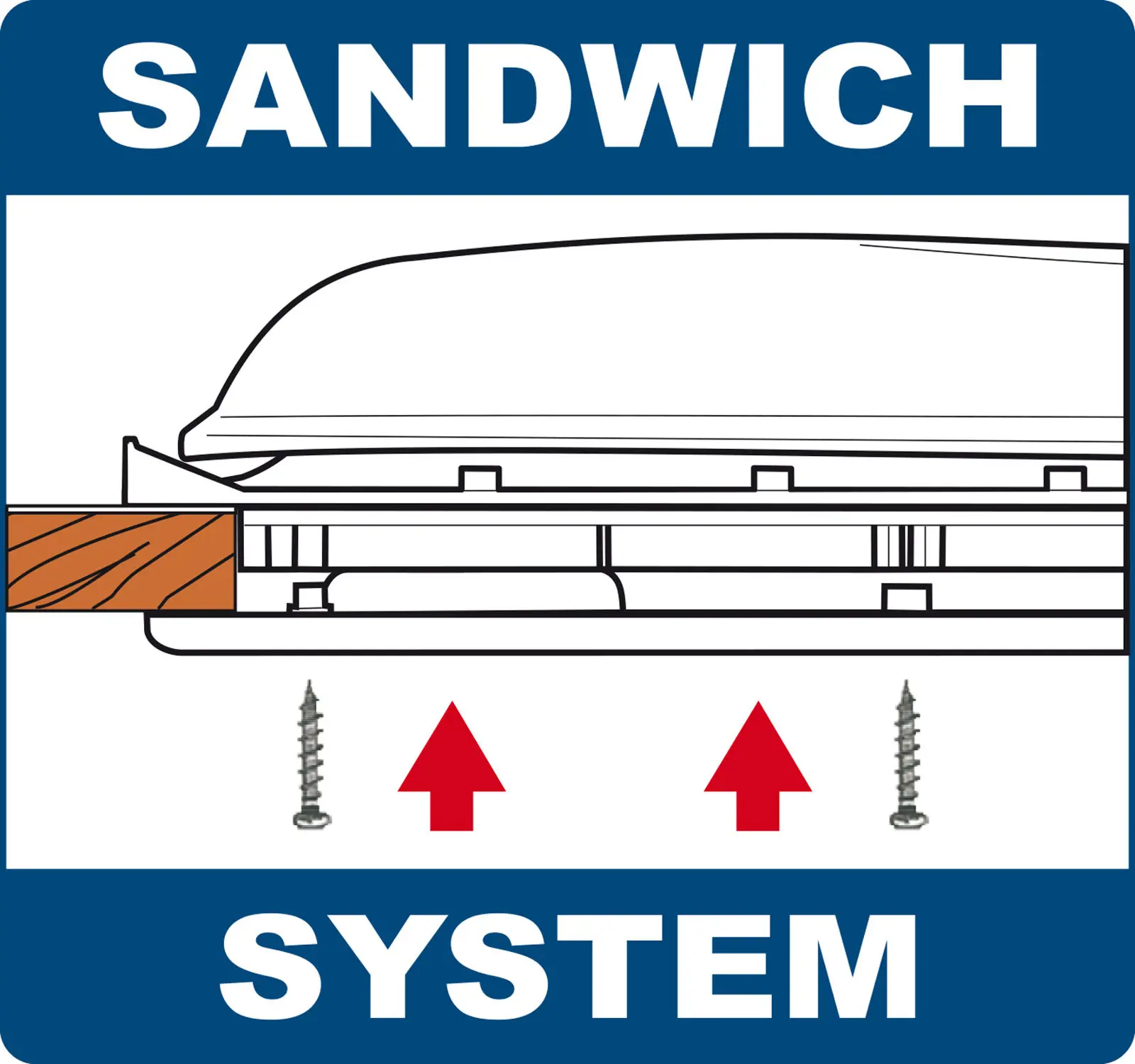 Thanks to the ‘sandwich’ mounting system, this model can be installed without having to drill any additional holes in the roof of the vehicle. Its aerodynamic shape means no spoiler is needed.