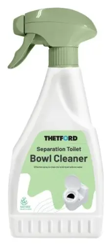 Separation toilets operate without water, so standard toilet cleaners designed for flush systems won't work properly. Thetford's Bowl Cleaner is designed to remove urine scale and residue without needing water, protecting the toilet's components while maintaining hygiene. The formula works with the separation system rather than against it, and the biodegradable ingredients break down naturally after disposal.
